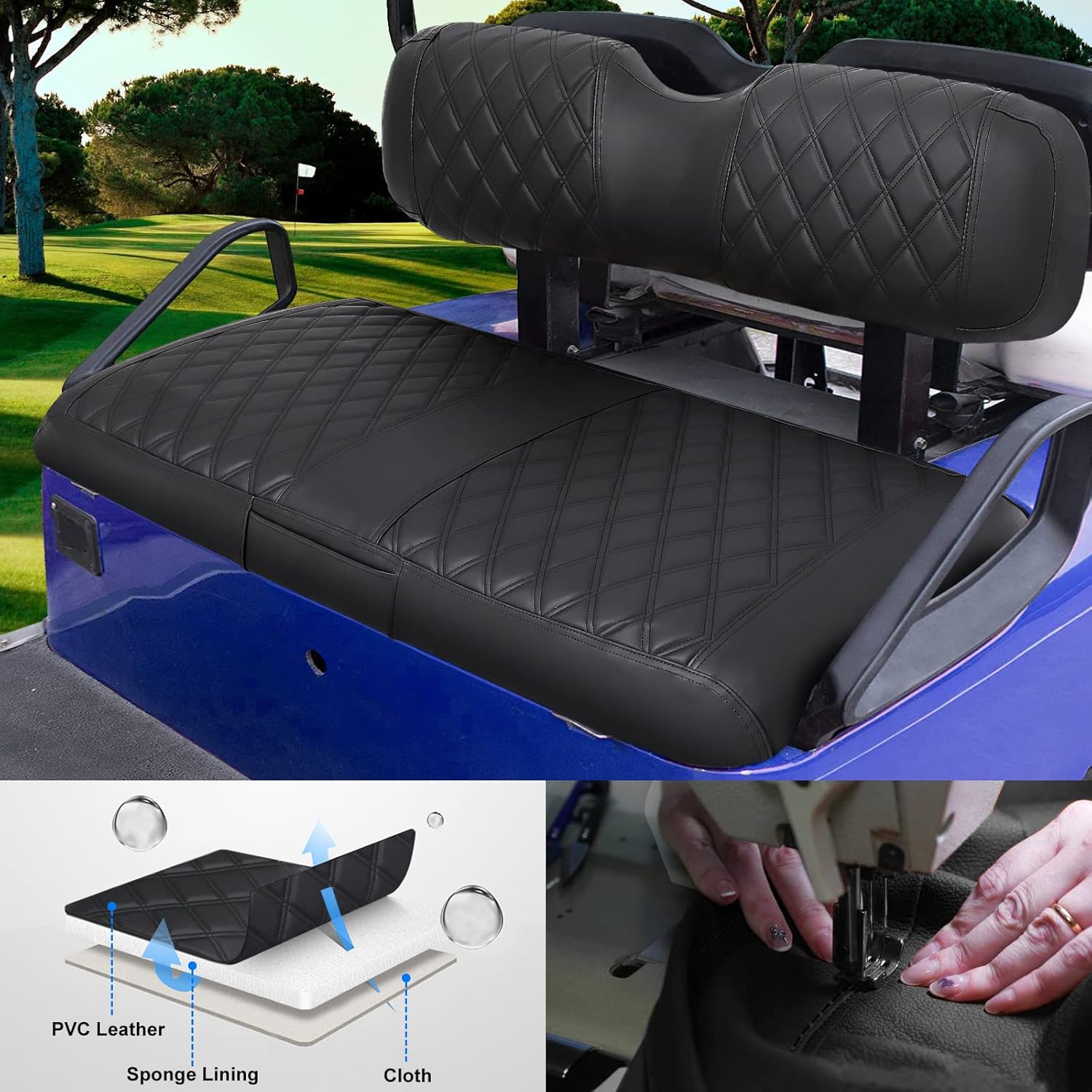 - Diamond Type Seat Cover Kit: This product includes 1 seat cushion cover and 1 backrest cover.Golf cart vinyl seat cover is very stable and does not easily shift
