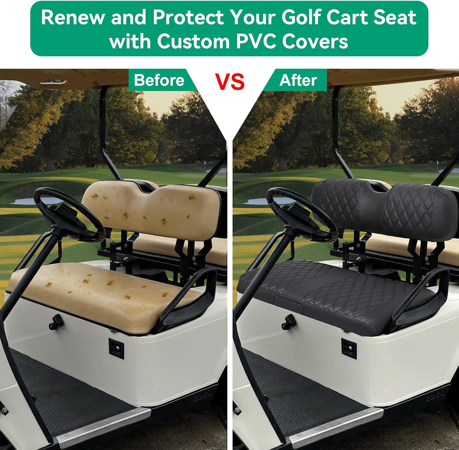 - Fit Models: Pvc leahur seat cover kit is only suitable for Ezgo Txt/ezgo rxv golf cart front OEM ordinary seats, not for luxurious thick cushions, please measure your seat size before buying