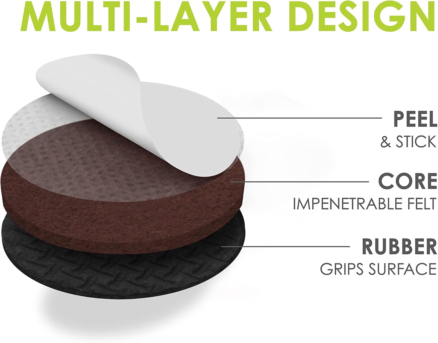 • Durable puncture proof furniture pads – Gorillapad premium furniture pads feature a specially formulated anti slip rubber base layer that provides maximum grip between furniture and flooring and have a puncture proof solid felt pad core for durability (covered by 5 year free replacement warranty).