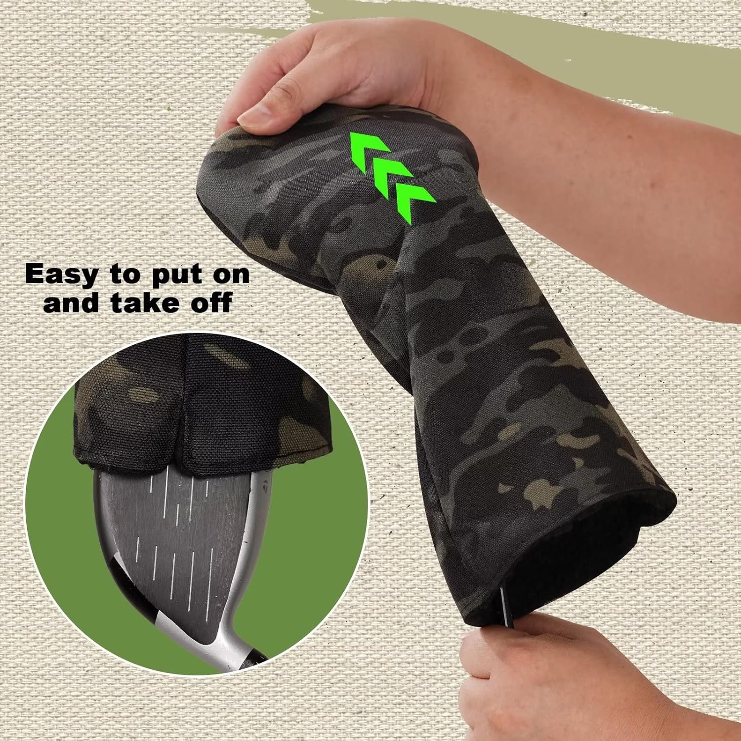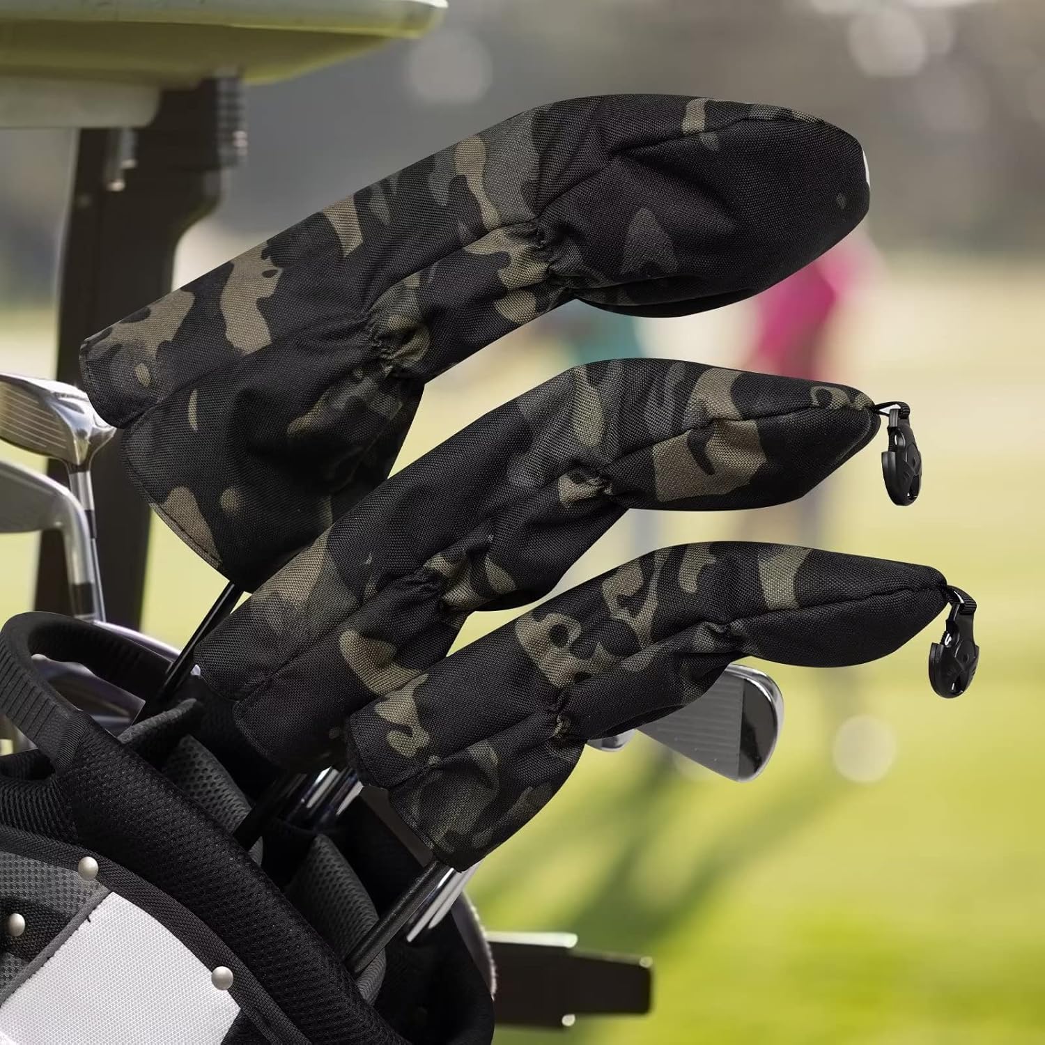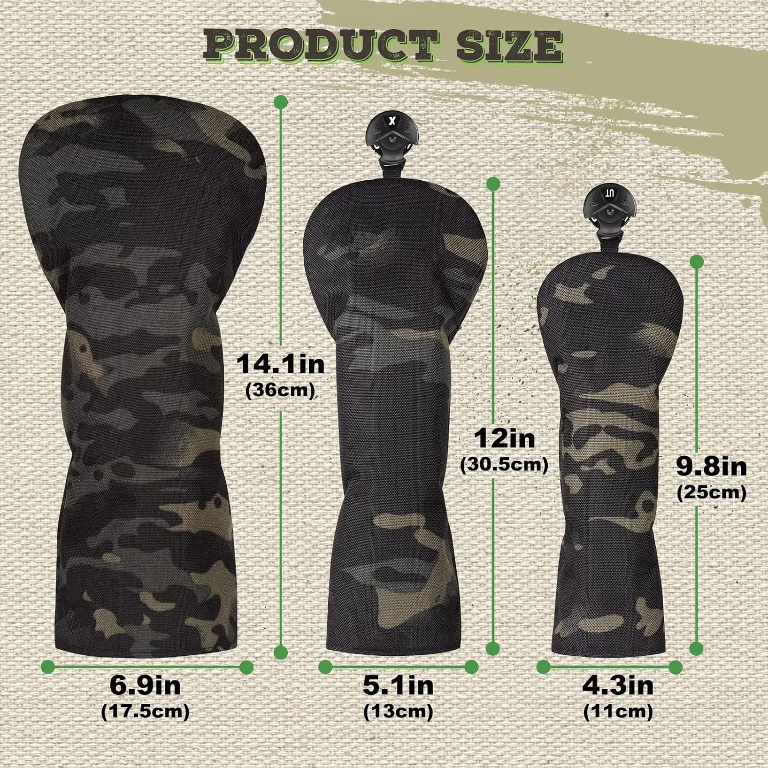 3 Pack Camouflage Golf Club Head Covers for Driver, Fairway Woods and Hybrid with Rotatable Number Tag
