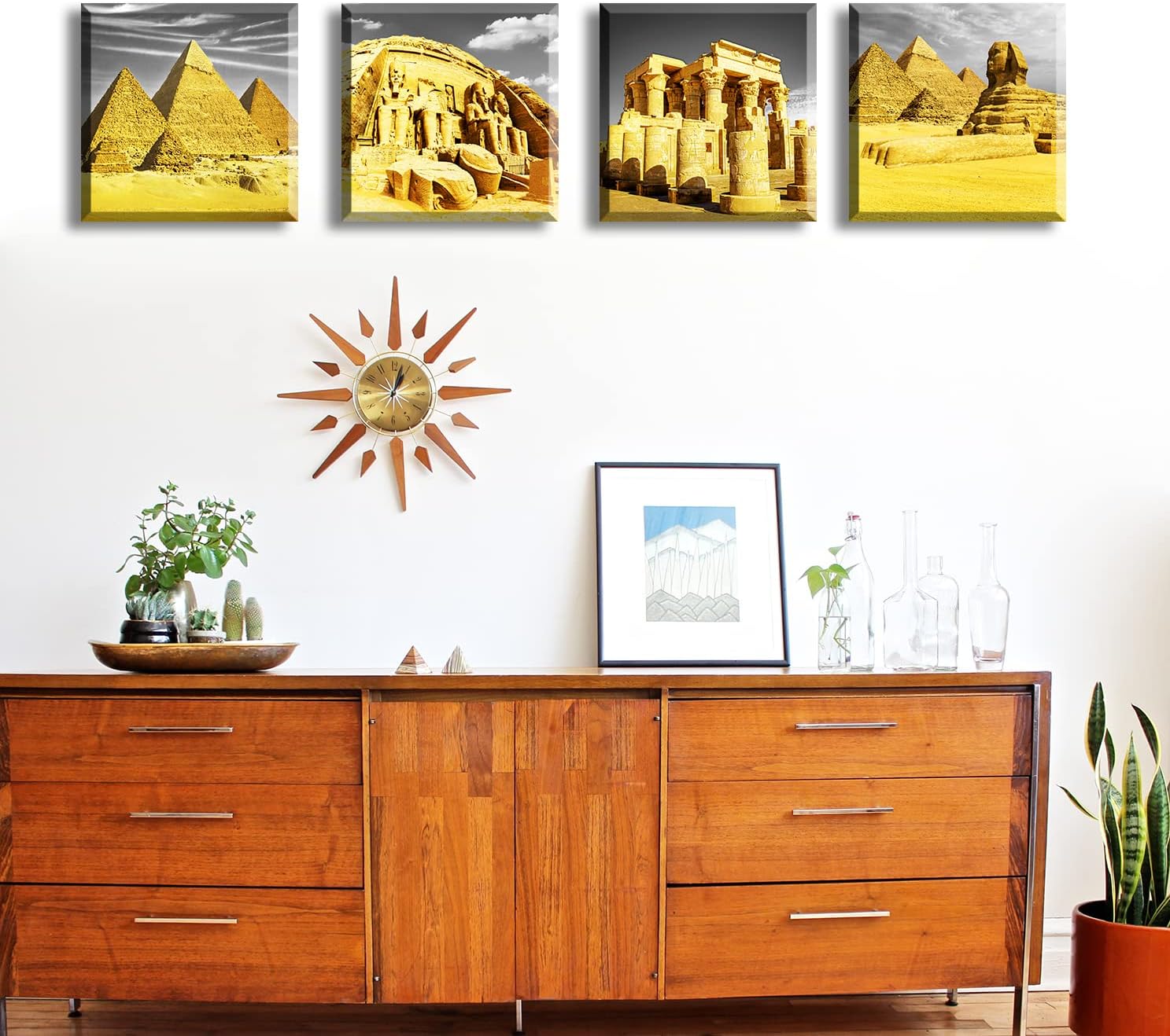 - Egyptian pyramids wall decoration:guest room decor, gold wall art posters,home decorations.Wall paintings are suitable for decorating on gray,yellow,blue,brown,silver,gold or bohemian style walls. Retro-style art works perfectly with your room