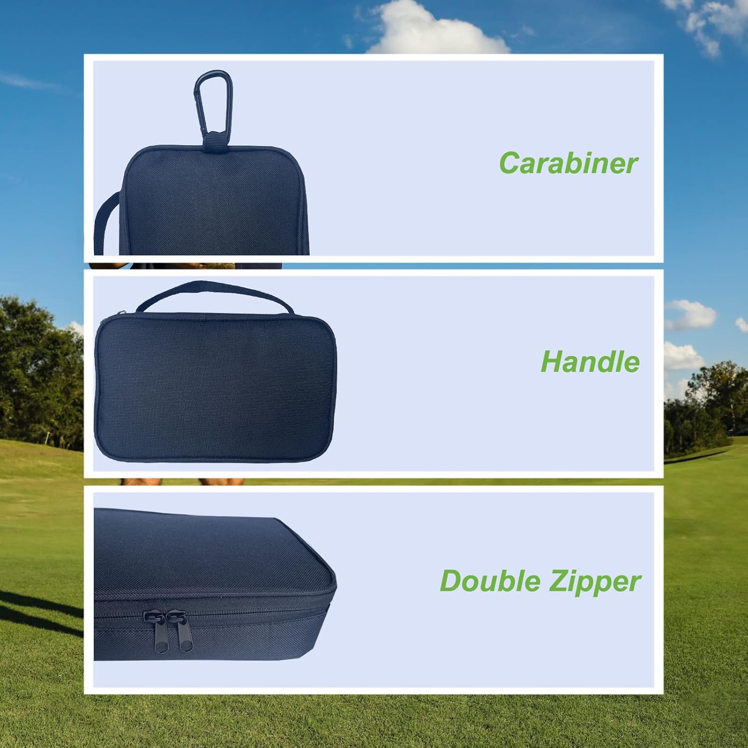 - MULTI-POCKETS DESIGN – Three zipper pockets and one mesh pouch for storage. Special Pocket design to separate golf accessories.