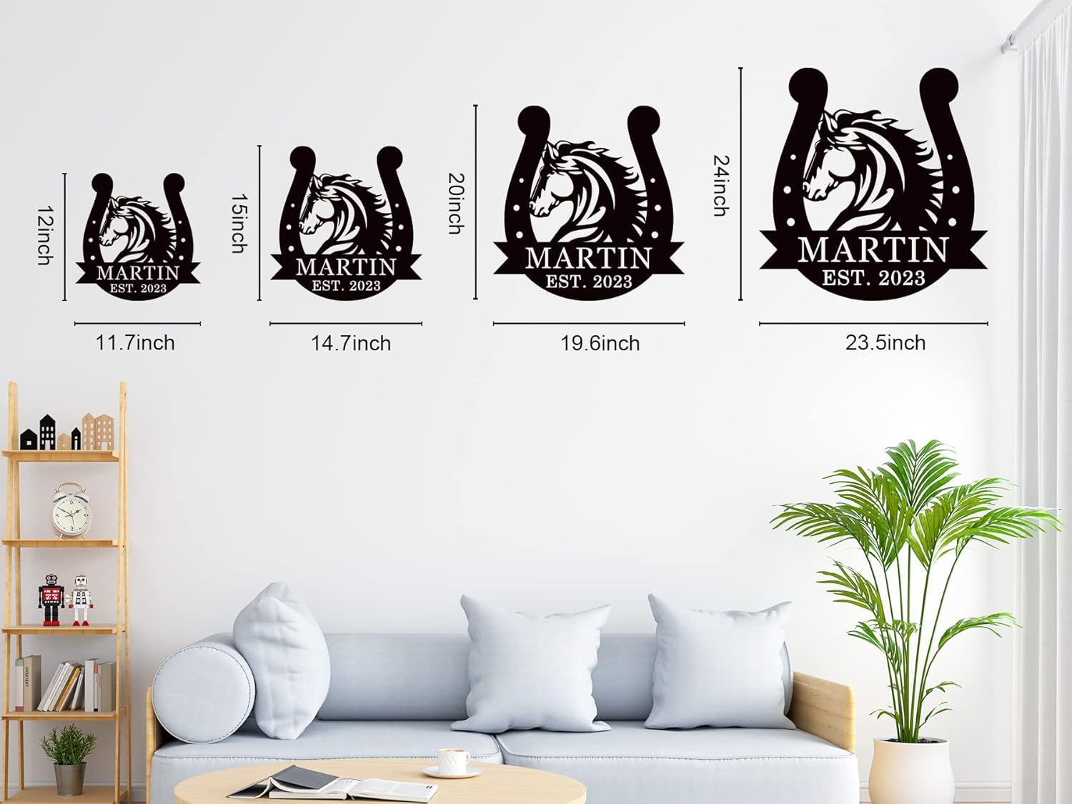 - Easy to Hang: The horse head metal sign is very easy to install, we offer multiple color and size options! The custom metal sign symbolizes a new beginning and makes you and your family infinitely beautiful. we will provide you with two screws for free and put this personalized sign on your doorway or wall within minutes!