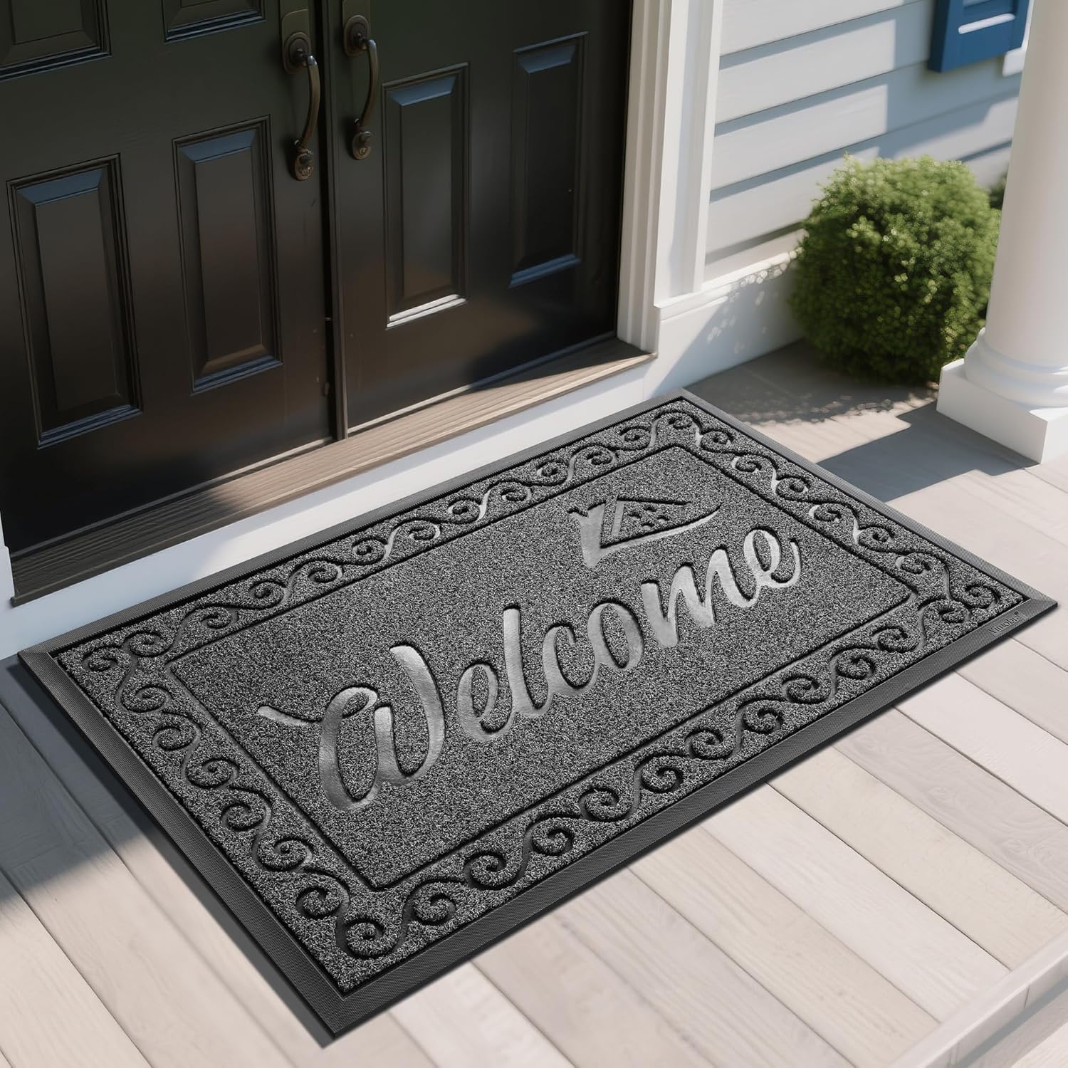 Yimobra Welcome Mat, Heavy Duty Sturdy Door Mats for Home Entrance Outdoor Indoor, Front Doormat for Outside Patio Floor Entry Porch Garage Office, Waterproof, Low Profile, 47X32 Inches, Black Grey