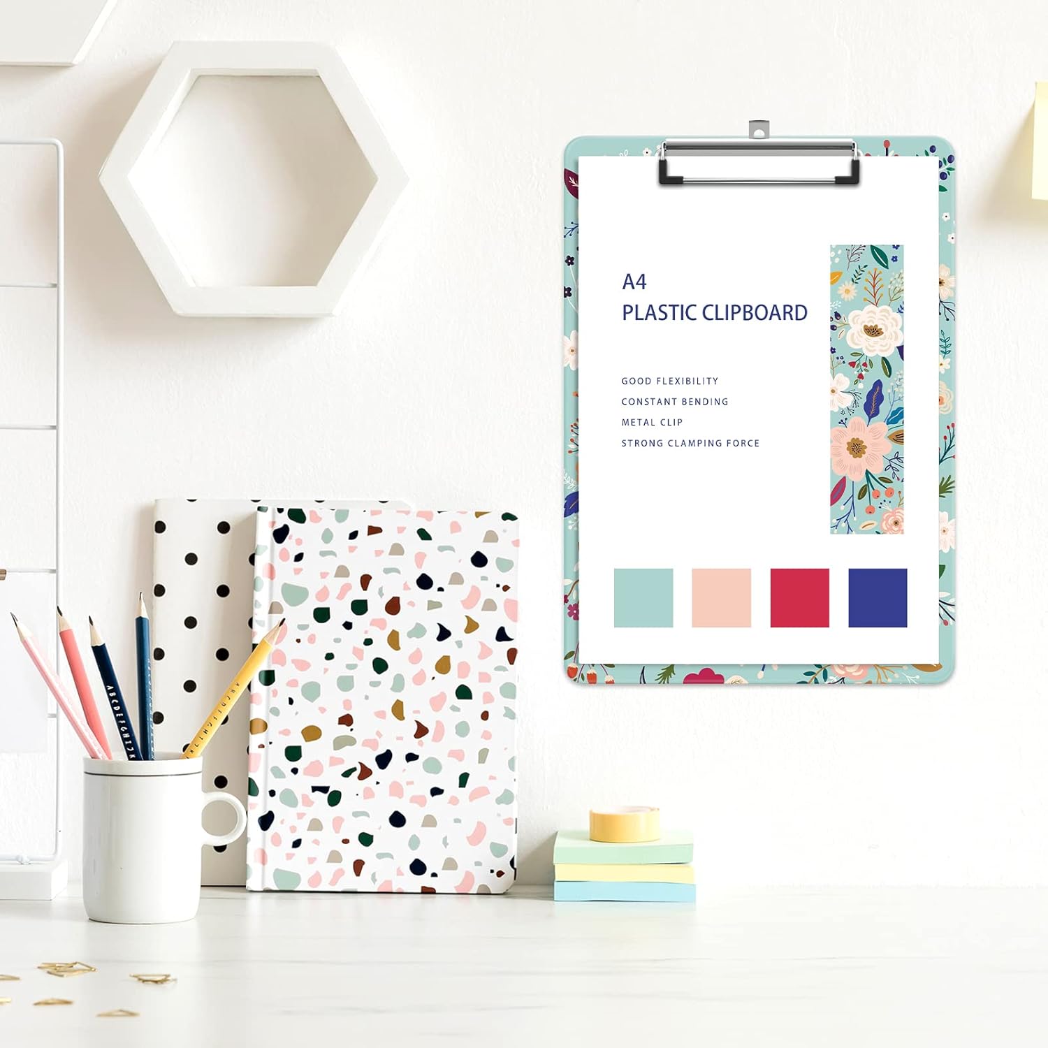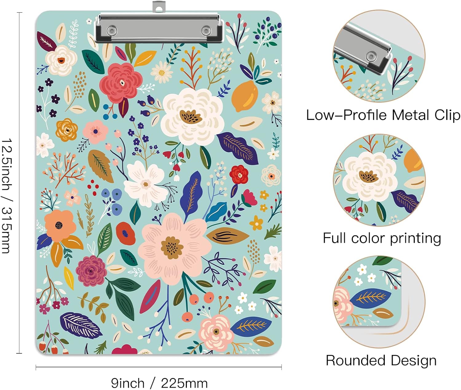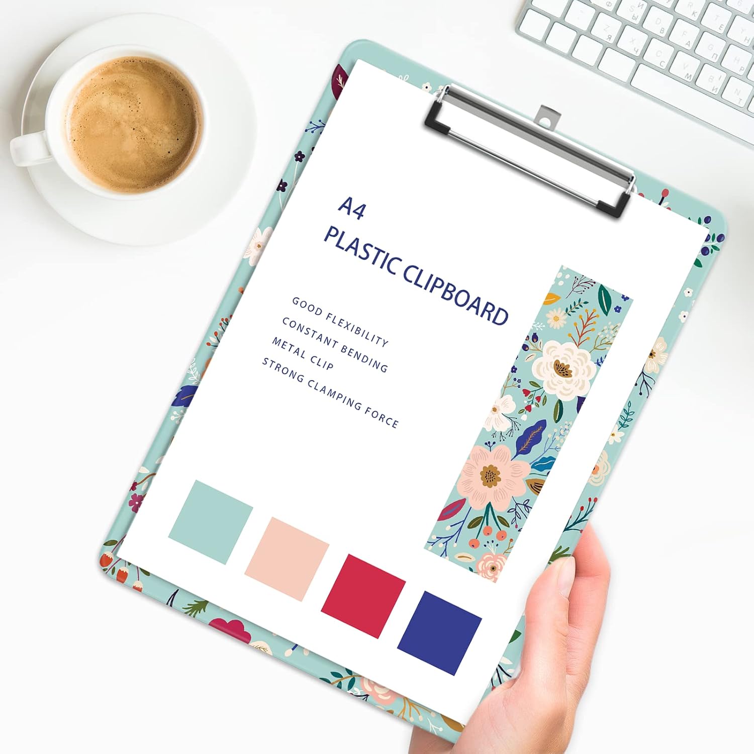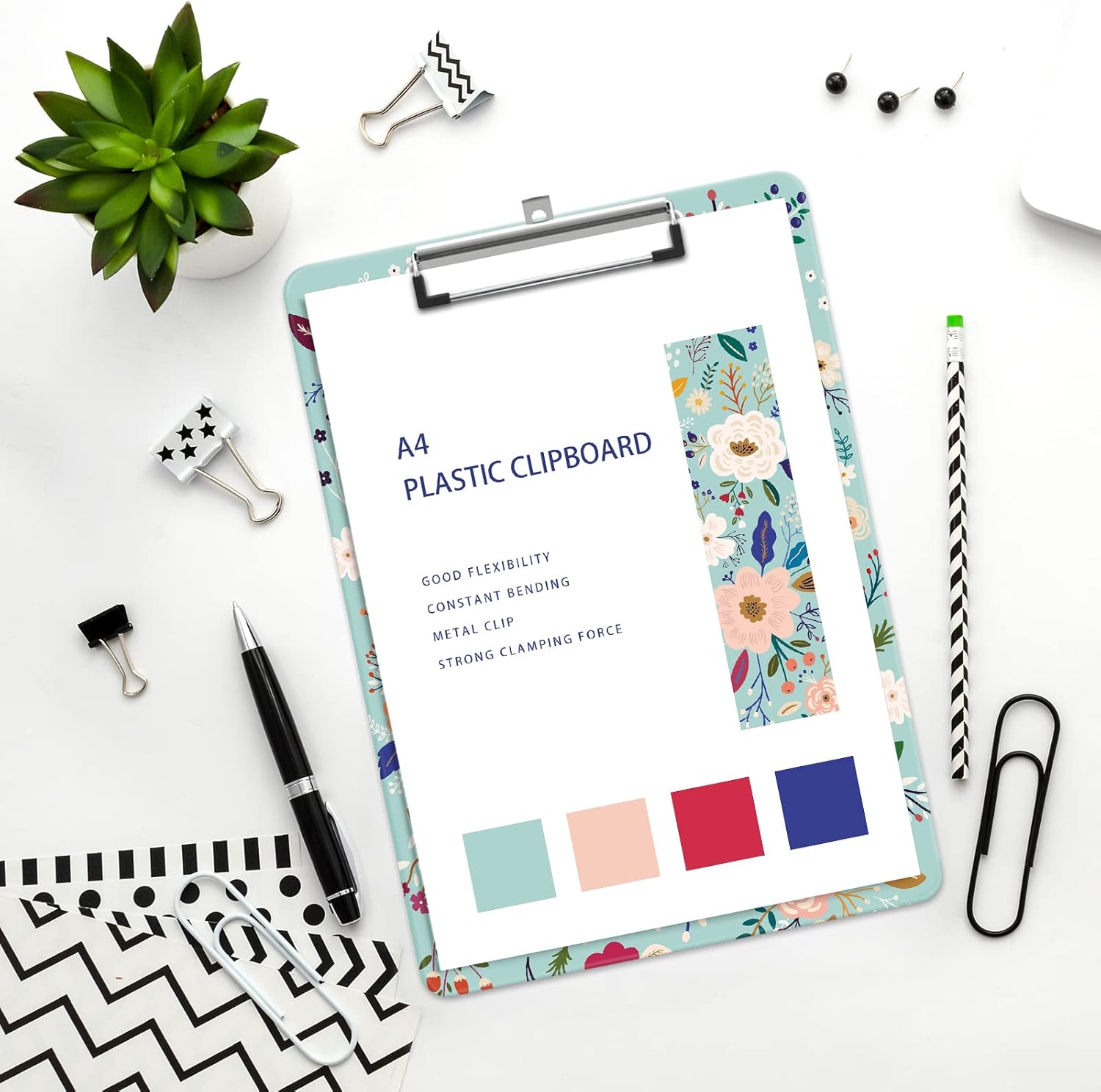 Plastic A4 Clipboards, Cute Clip Board Stardard Letter Size 9 x 12.5 in, Office Decorative for Students Women Men and Kids, Green Flower