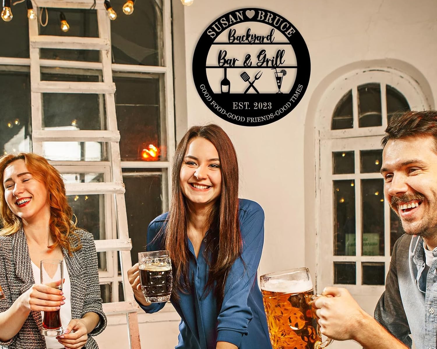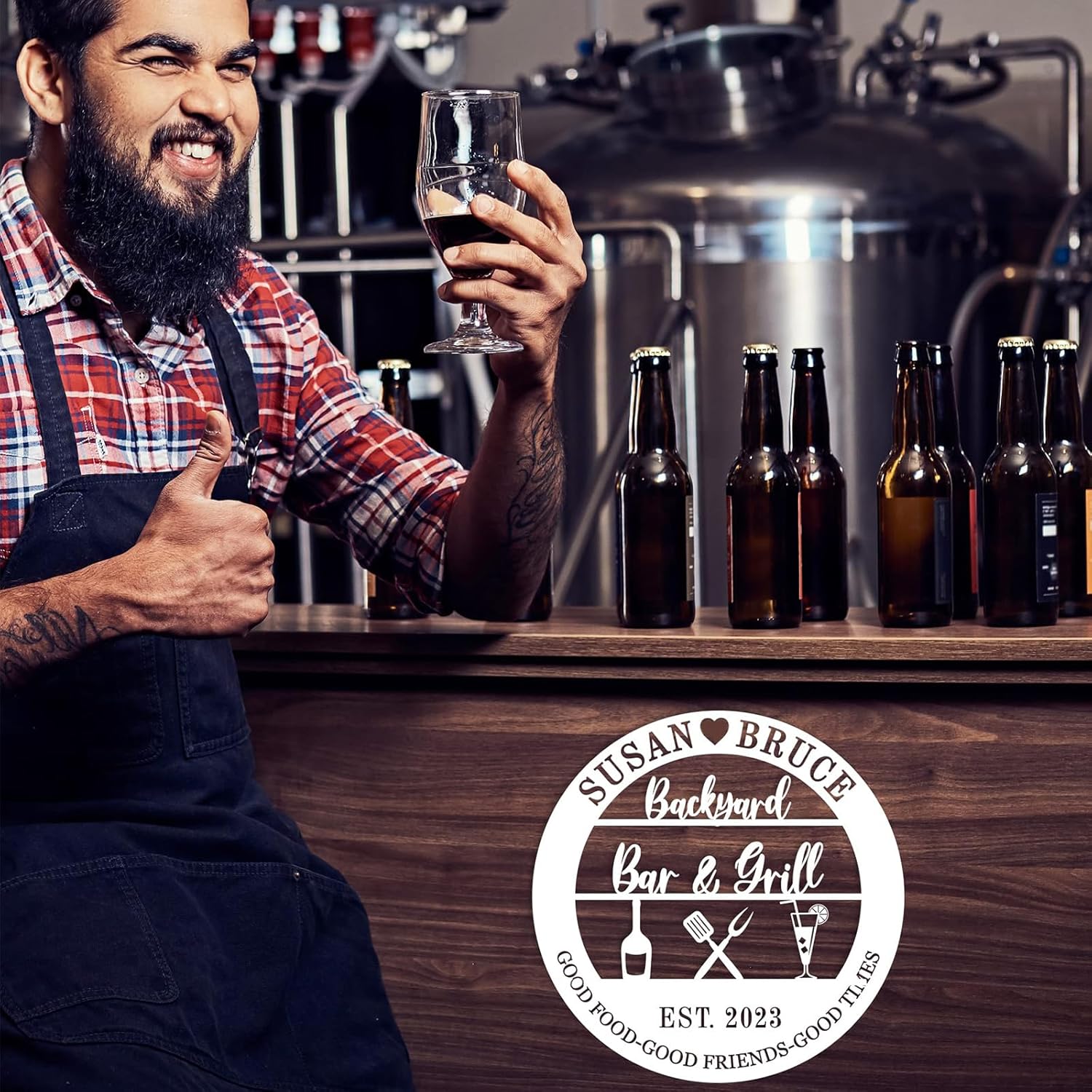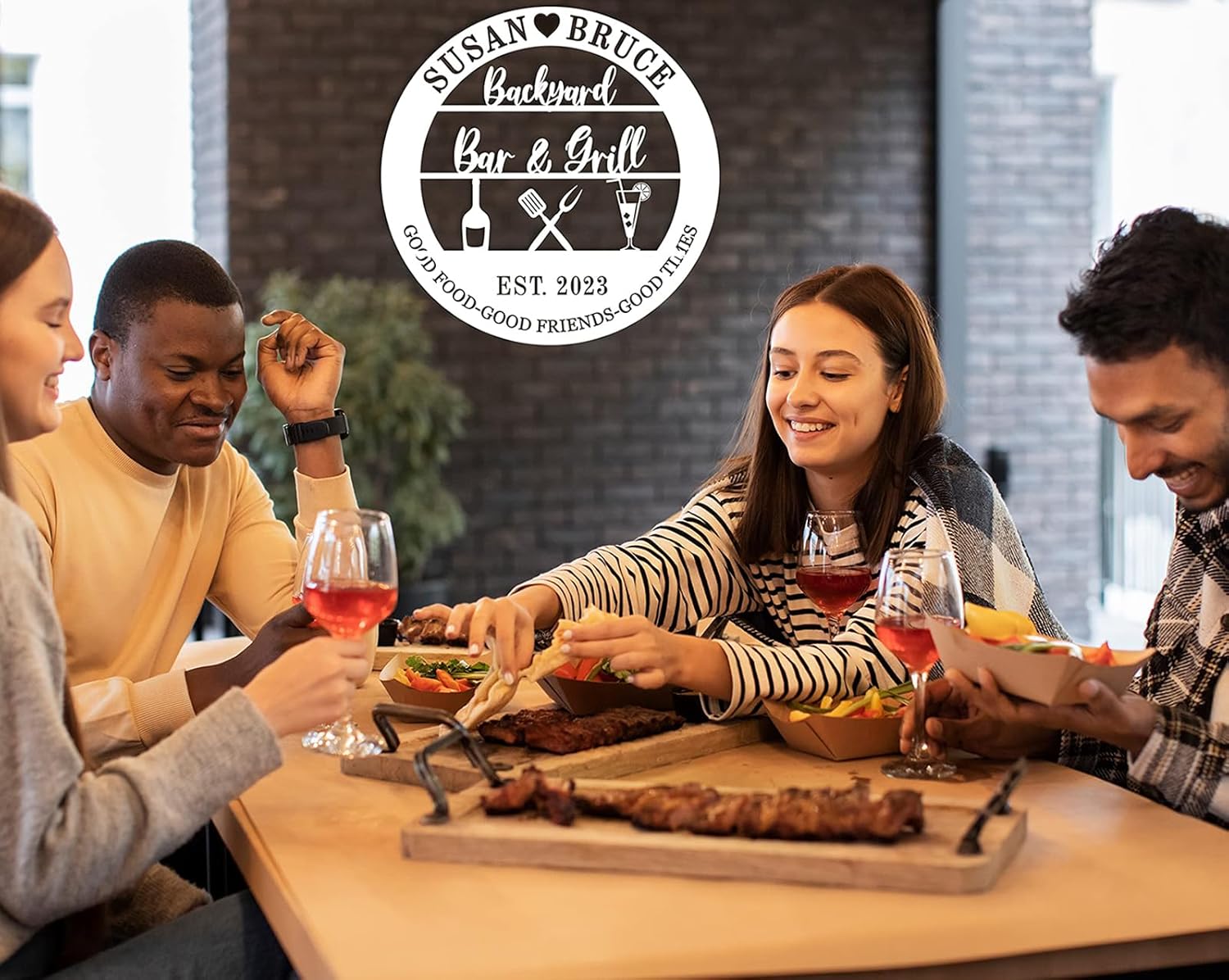 Custom Bar and a Grill Metal Sign, Personalized Bar Sign, Personalized Grill Sign,Man Cave, Club, Custom Metal Bar Decor,Backyard Patio Kitchen for BBQ Outside Wall Decor