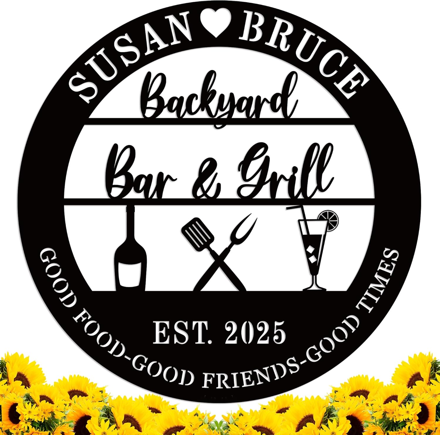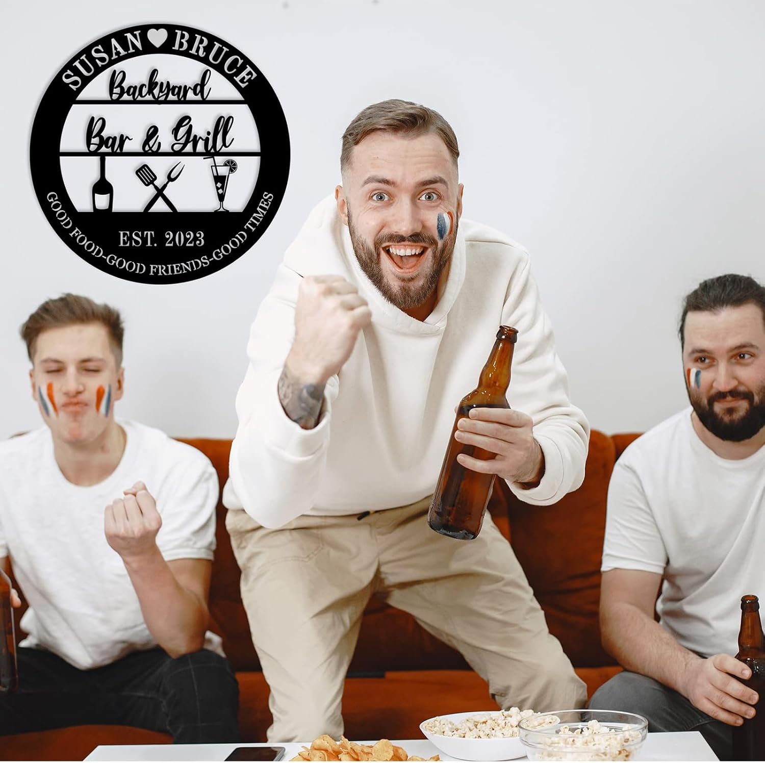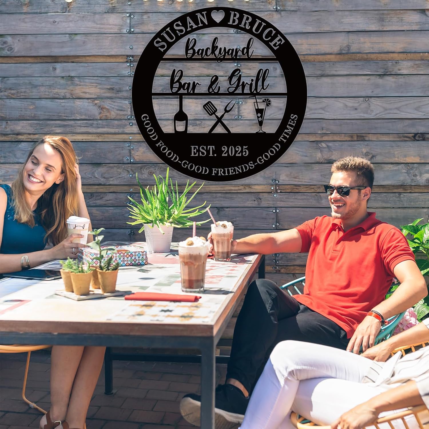 Custom Bar and a Grill Metal Sign, Personalized Bar Sign, Personalized Grill Sign,Man Cave, Club, Custom Metal Bar Decor,Backyard Patio Kitchen for BBQ Outside Wall Decor