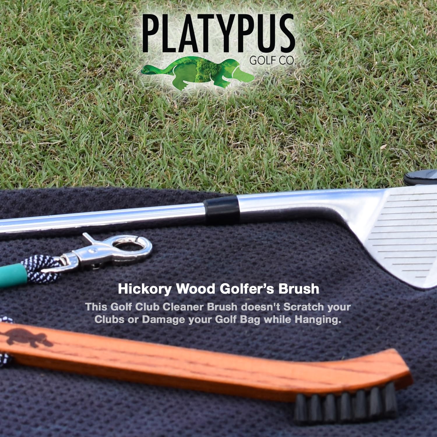 Platypus Golf Co. Hickory Wood Golf Club Brush & Non-Slip Groove Cleaner with Stiff Nylon Bristles, Paracord Rope & Stainless Steel Metal Clip, for Cleaning Grooves on Clubs, Fits Any Golfer's Bag