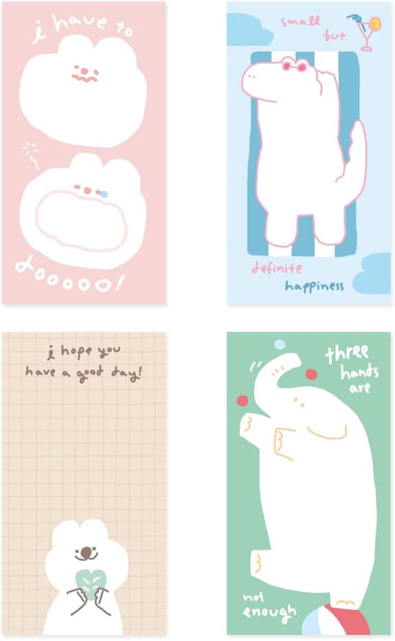 Monolike Memopad Storytown Afternoon B SET - 4 Packs, 4 Different Designs, 80 Sheets Per Pad, Total 320 Sheets, Note pads, Writing pads, 80x148mm