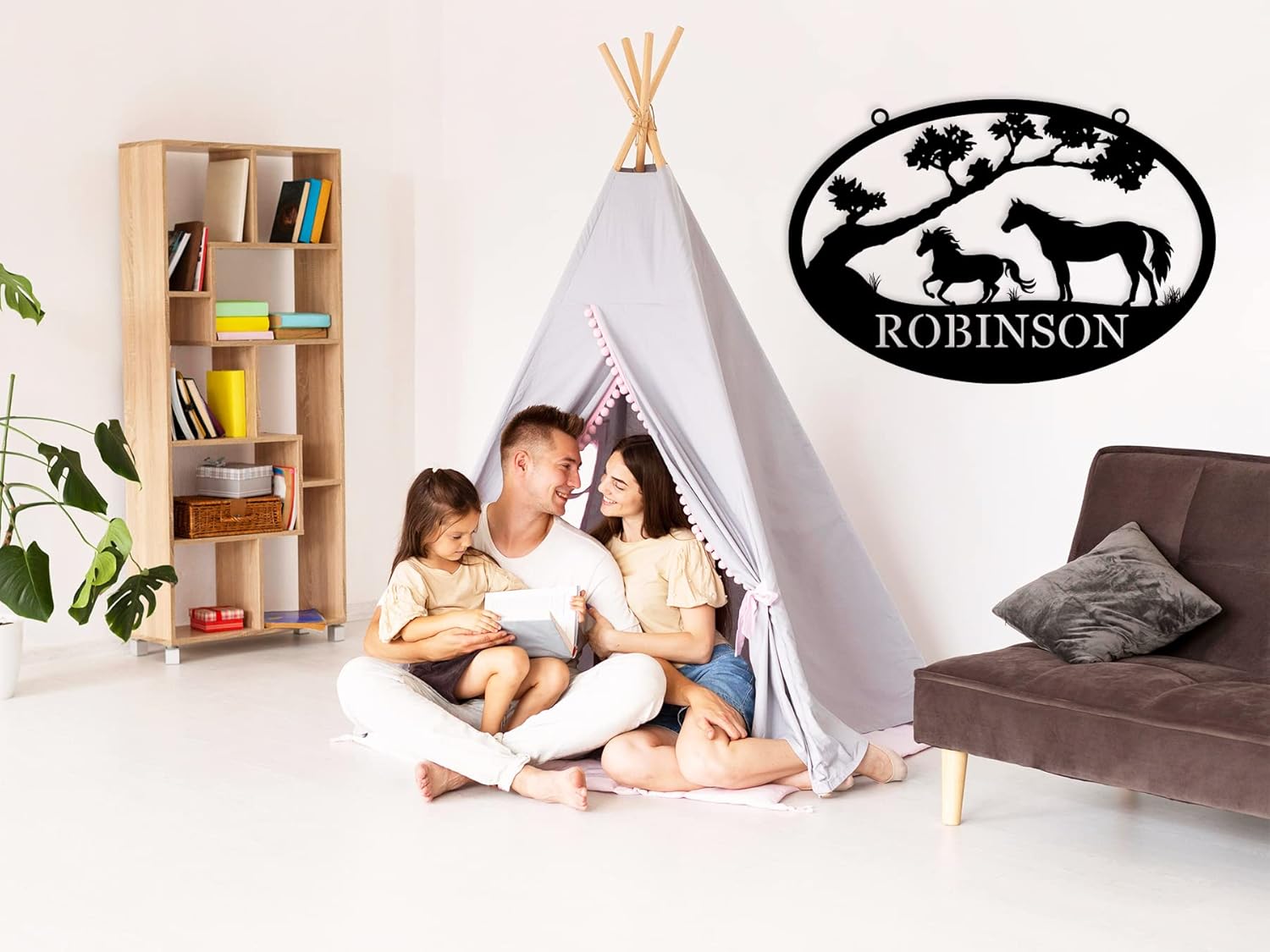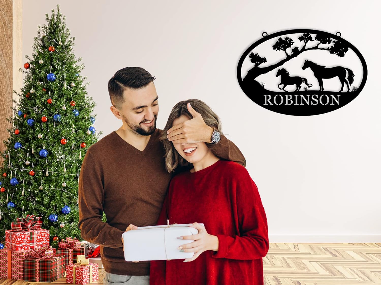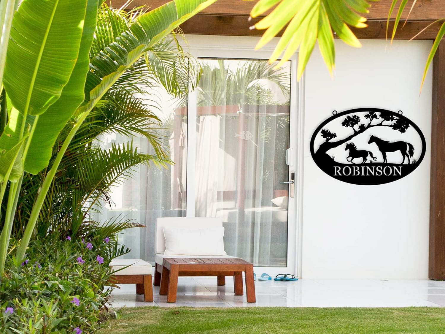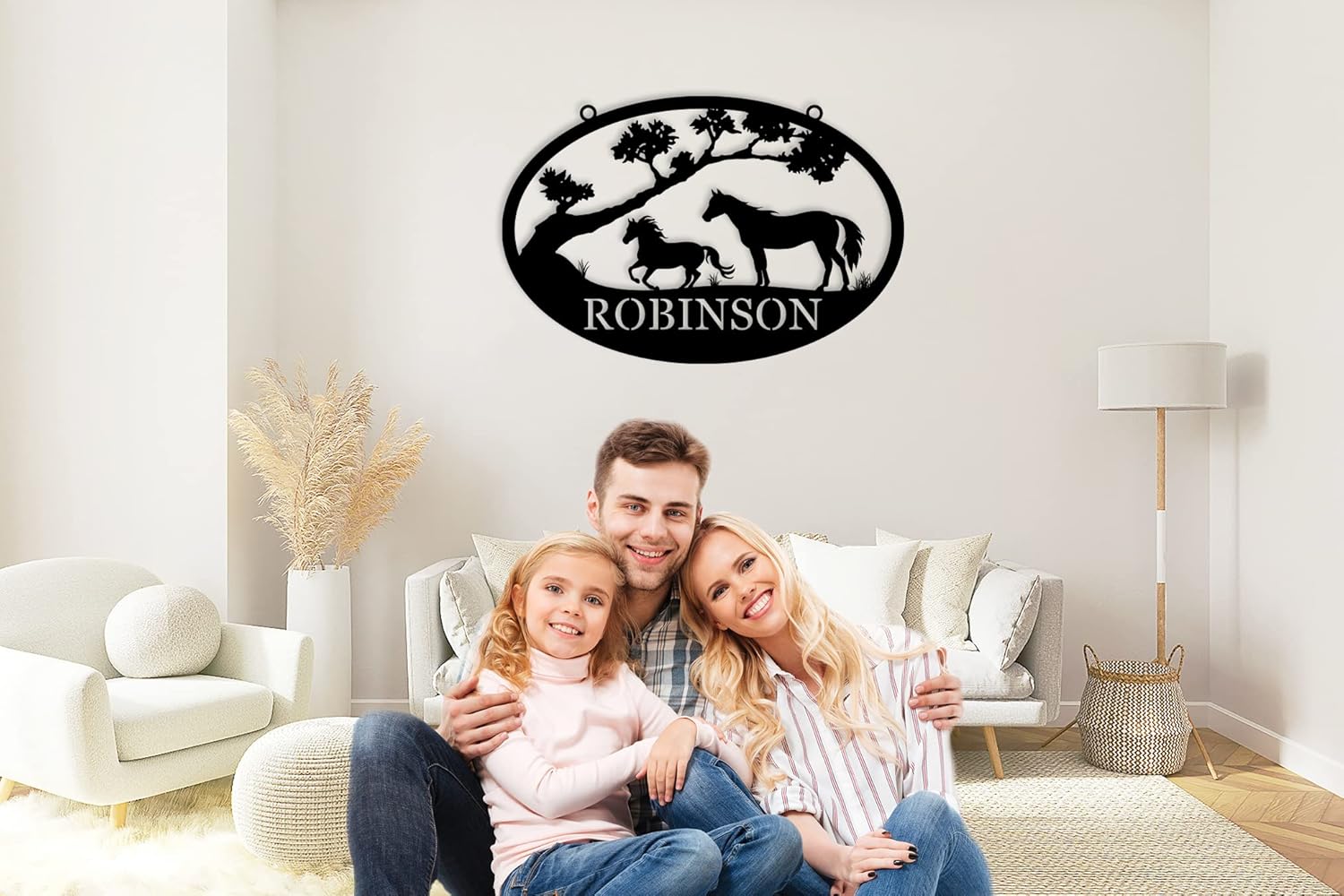 Custom Running Horses Metal Sign, Personalized Horse Farm Sign, Unique Metal Wall Art, Custom Farm Name Signs, Personalized Family Signs