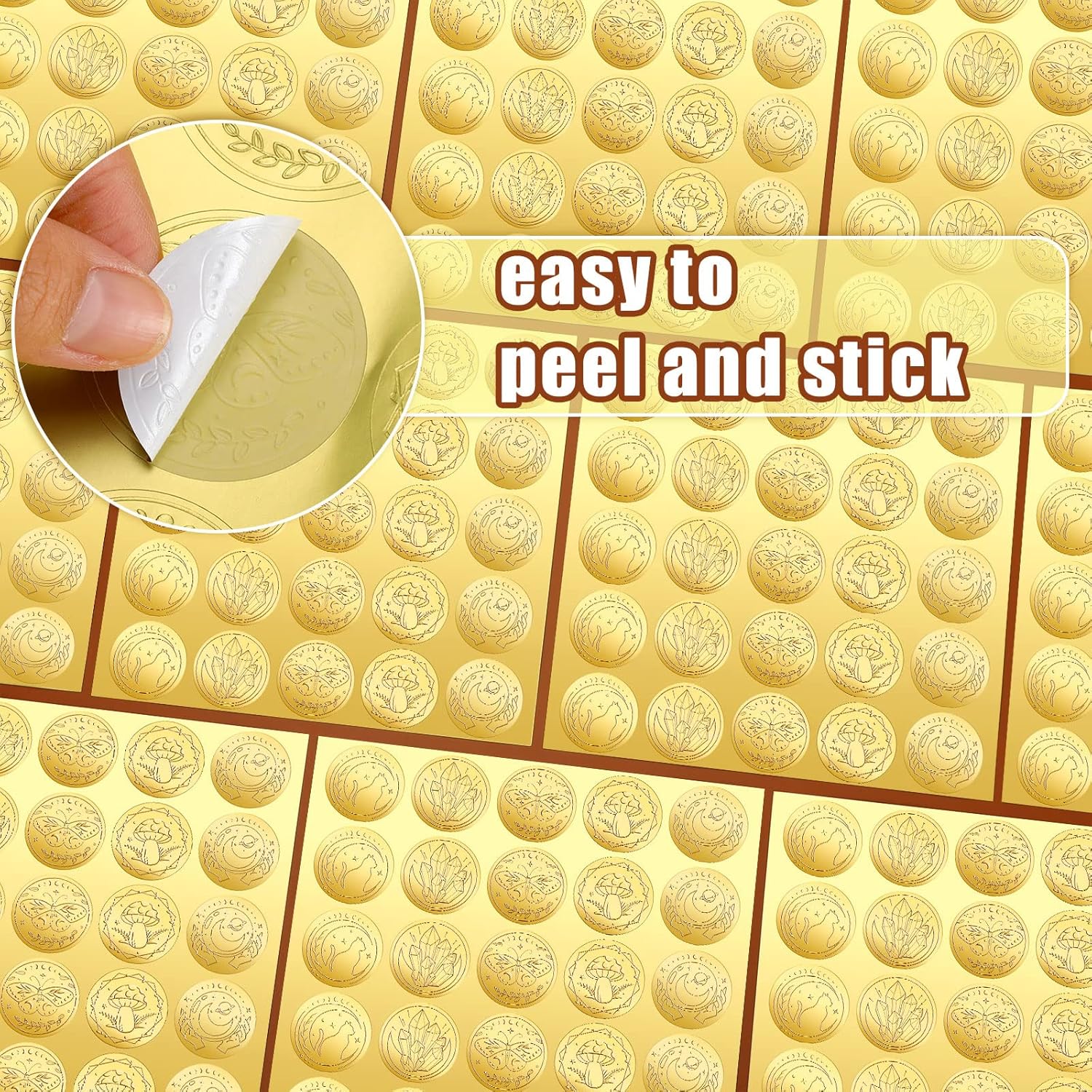 Chinco 500 Pieces Gold Embossed Envelope Seals Stickers Adhesive Seal Stickers Vintage Embossed Foil Certificate Kit Plant DIY Labels for Wedding Invitations Envelopes, 5 Patterns(Witchcraft Style)