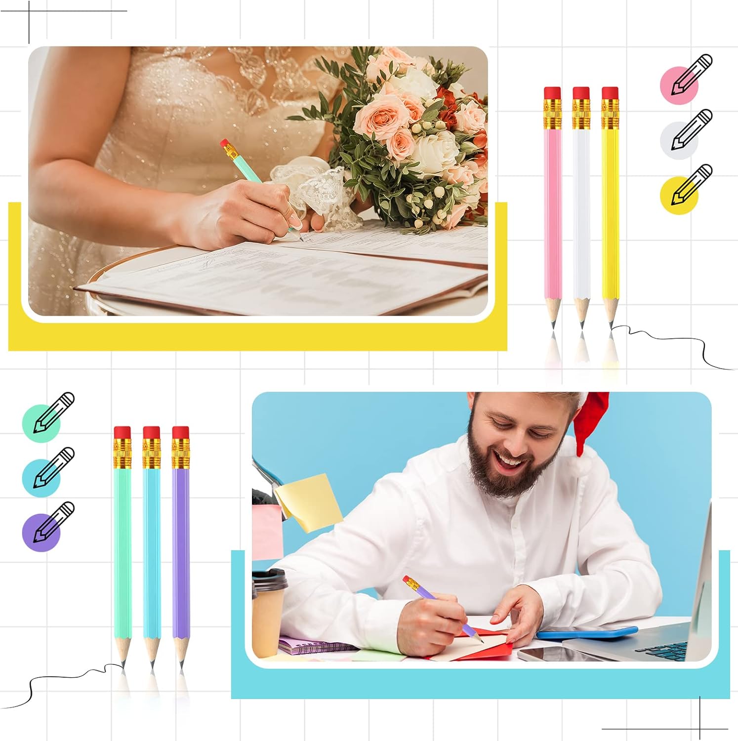 Zonon 48 Pieces Golf Pencils Mini Half Pencils with Eraser Short with Erasers Bulk Small for Kids HB Wedding Bridal School Office Writing Drawing Pocket(Pink, Yellow, Purple, Blue, White, Green)