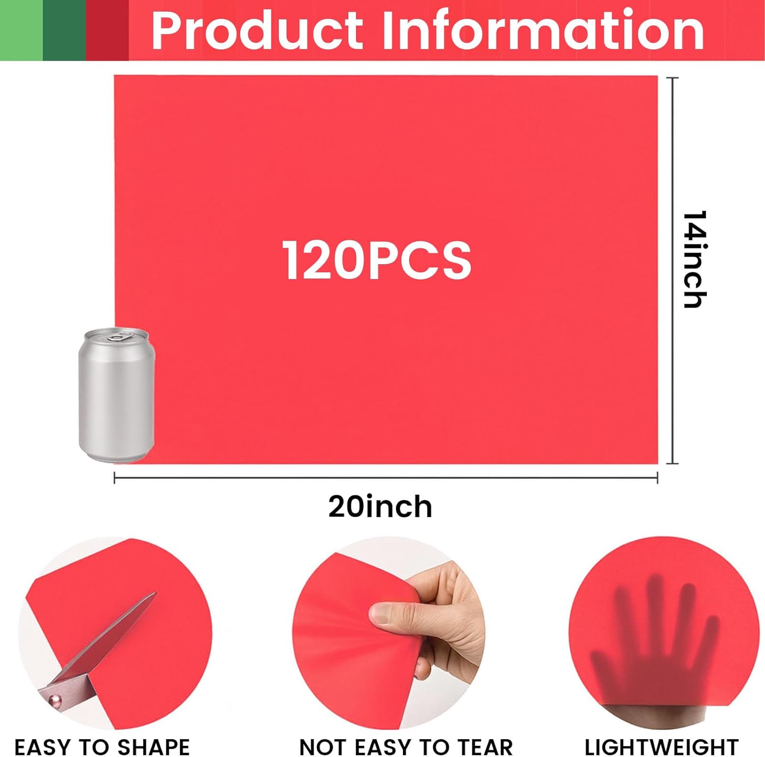 - Super Value Pack - A bountiful collection of 120 sheets of Christmas-themed tissue paper, with 30 sheets per color. The colors featured are green, dark green, red, and dark red, adding a touch of festive flair to your gift-giving.