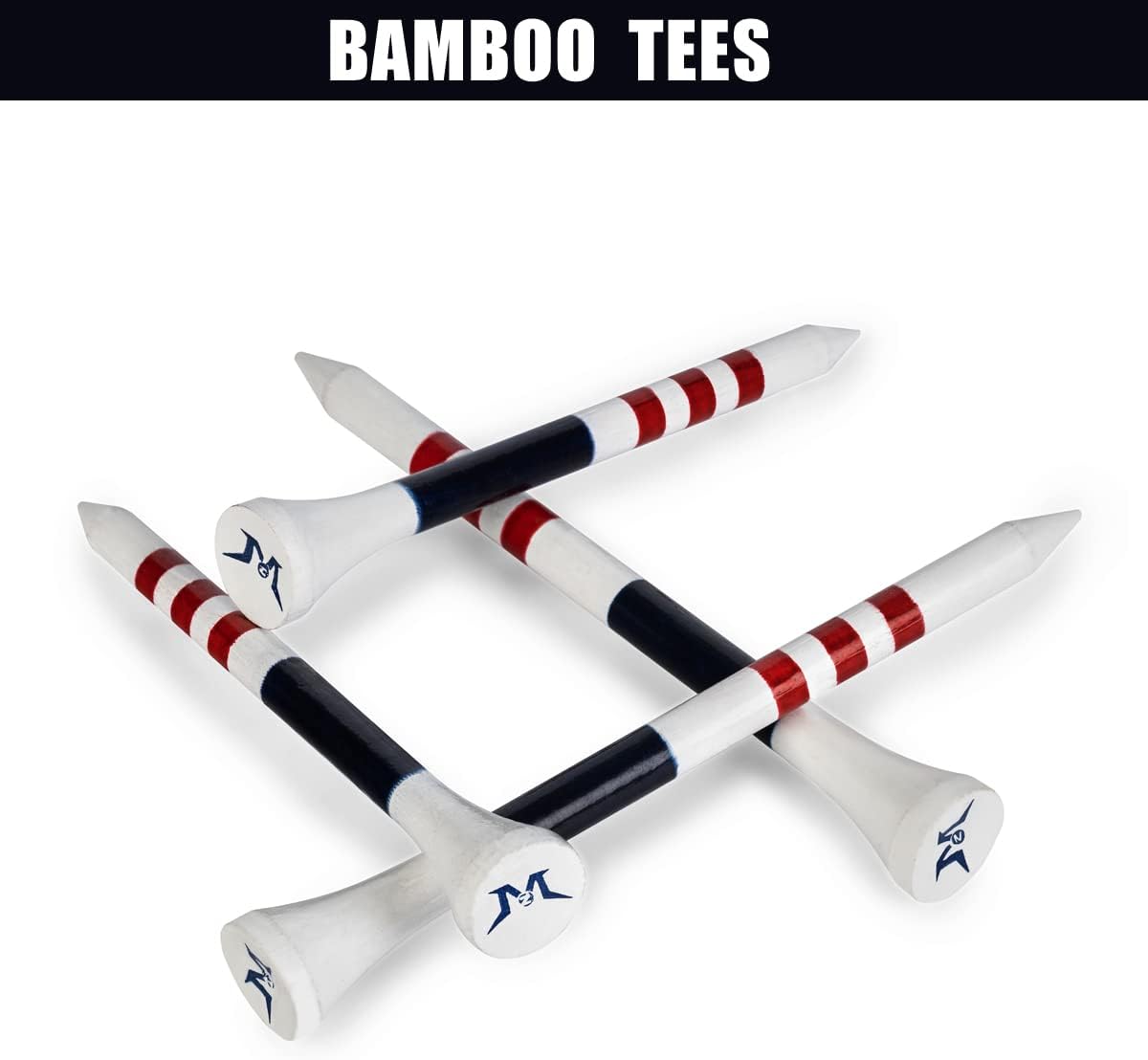 MAZEL Natural Wood/Bamboo Golf Tees 2 3/4 Inch & 3 1/4 Inch,Pack 50 or 120,Reduce Friction & Side Spin,More Stable Golf Tees