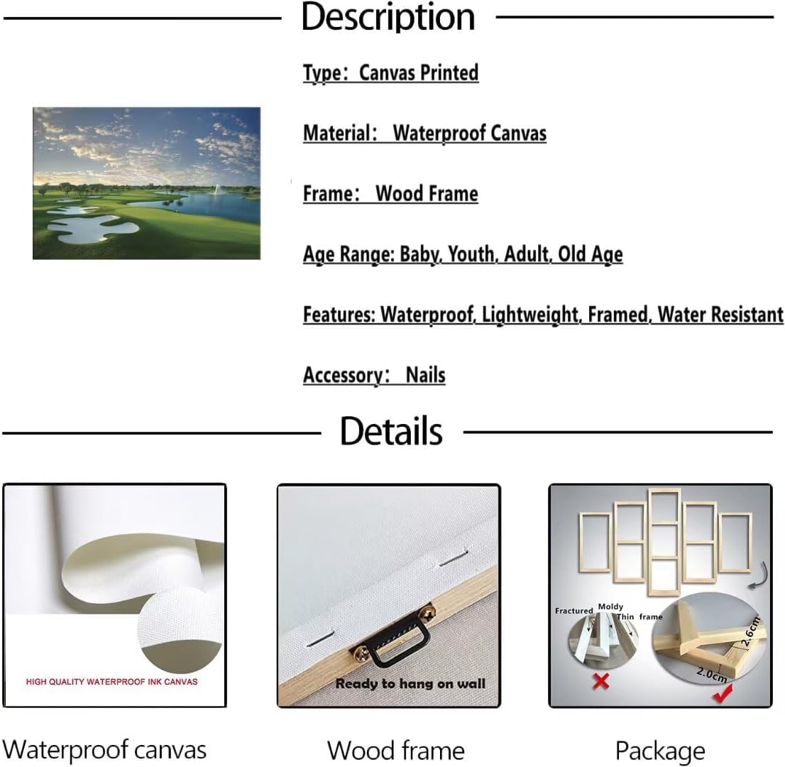 - 💝Golf course canvas wall art will decoration your living room, bedroom,gym room,office,church,hallway,kitchen or farmhouse, dormitory and other wall decorations better than better, you can enjoy the golf course pictures every day.