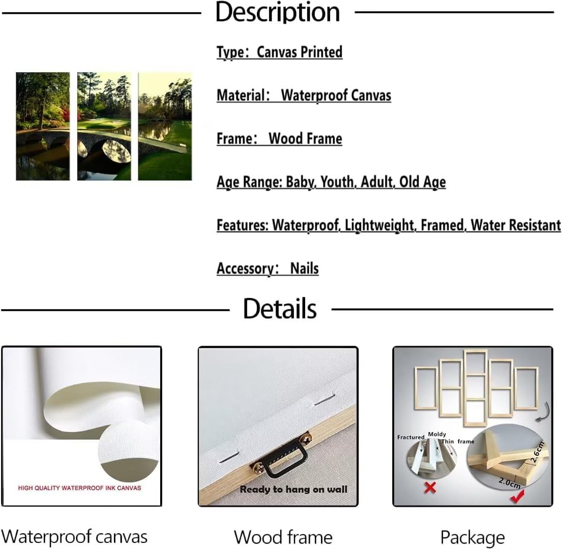 - 💝Golf course canvas wall art will decoration your living room, bedroom,gym room,office,church,hallway,kitchen or farmhouse, dormitory and other wall decorations better than better, you can enjoy the golf course pictures every day.