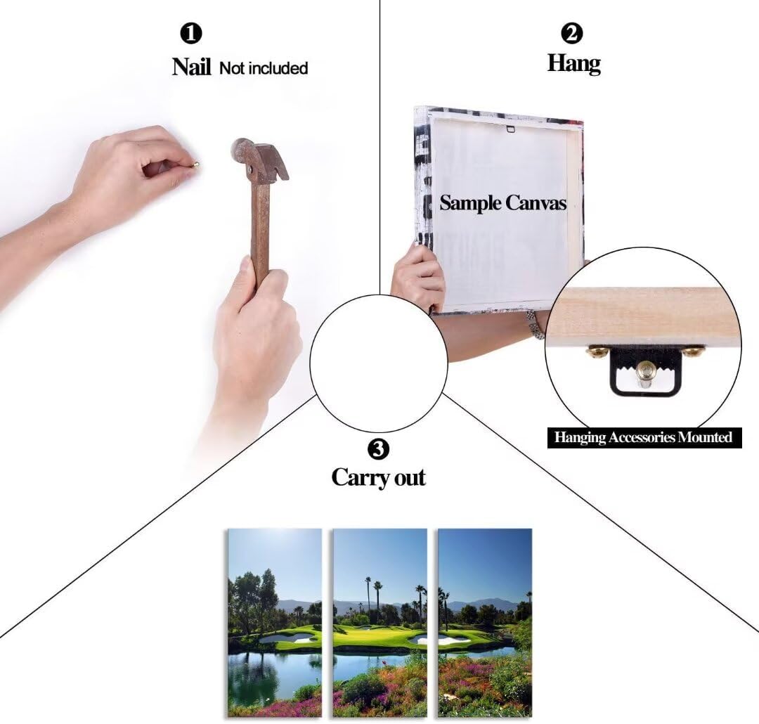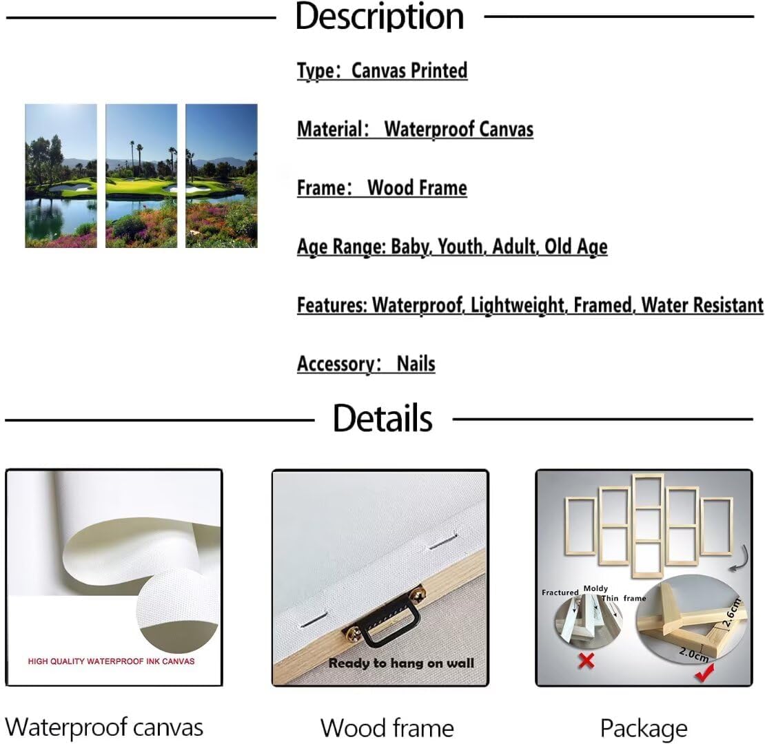 - 💝Golf course wall art size: 20''W x 40''Hx3, golf artwork canvas prints will easy to hang, and decor your room better.