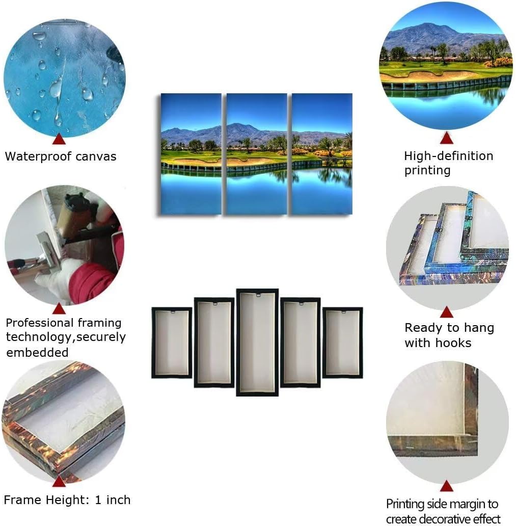 - 💝Golf course canvas wall art will decoration your living room, bedroom,gym room,office,church,hallway,kitchen or farmhouse, dormitory and other wall decorations better than better, you can enjoy the golf course pictures every day.