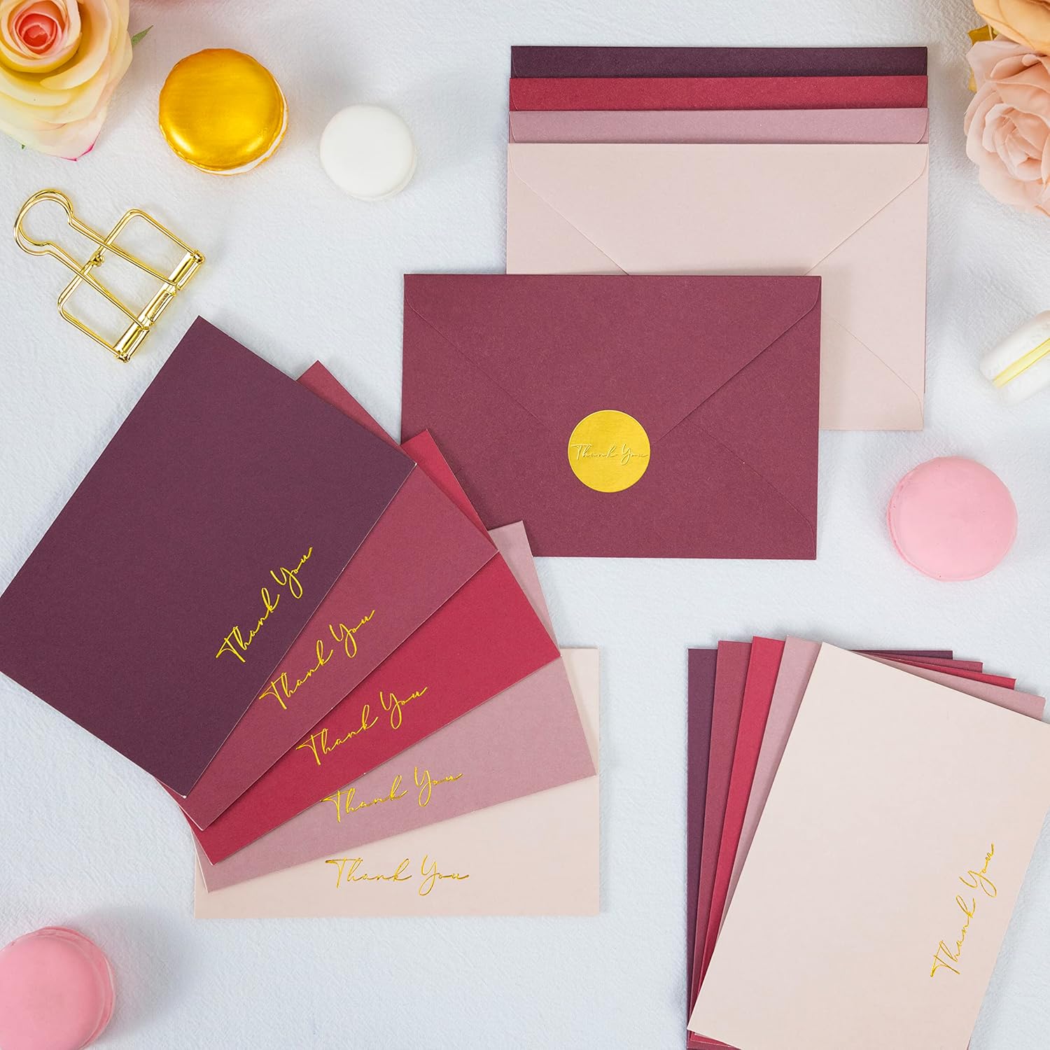 - Elegant Design: Elevate your gratitude with this exquisite set of 4x6 thank you cards with envelopes, featuring five elegant hues. Each thank you card is adorned with luxe gold foil 'thank you' script at the base—a timeless touch for weddings, gifts, or heartfelt notes