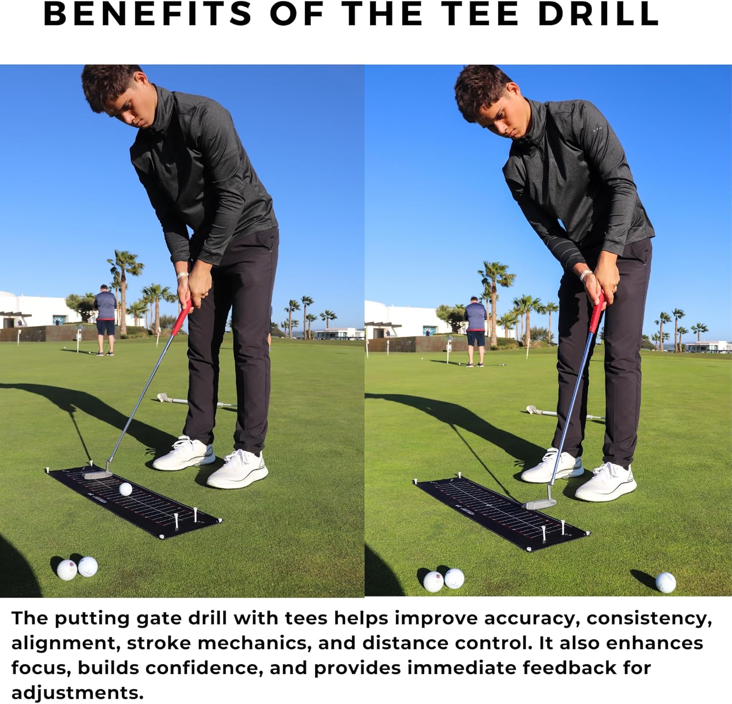- GREAT VALUE - This set includes everything you need to improve your putting: including1x golf putting arc mat, that has the ability to not only improve your stroke but also ensure youβre starting your putts on the intended line! The mat includes tee holes either side of the start line to ensure your putts start on line providing you instant direct feedback