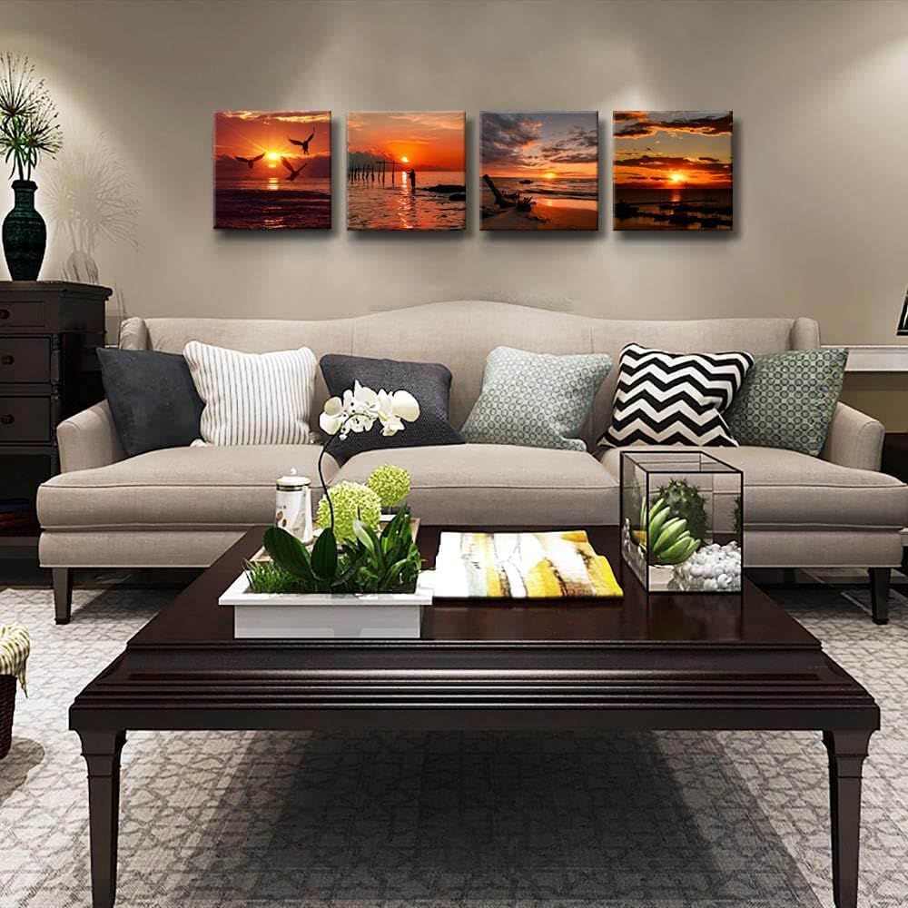 - 🌊Canvas Print Size: 12 x 12 inchesx 4 panel ( 30 x 30 cm x 4 pcs ) Framed picture posters.