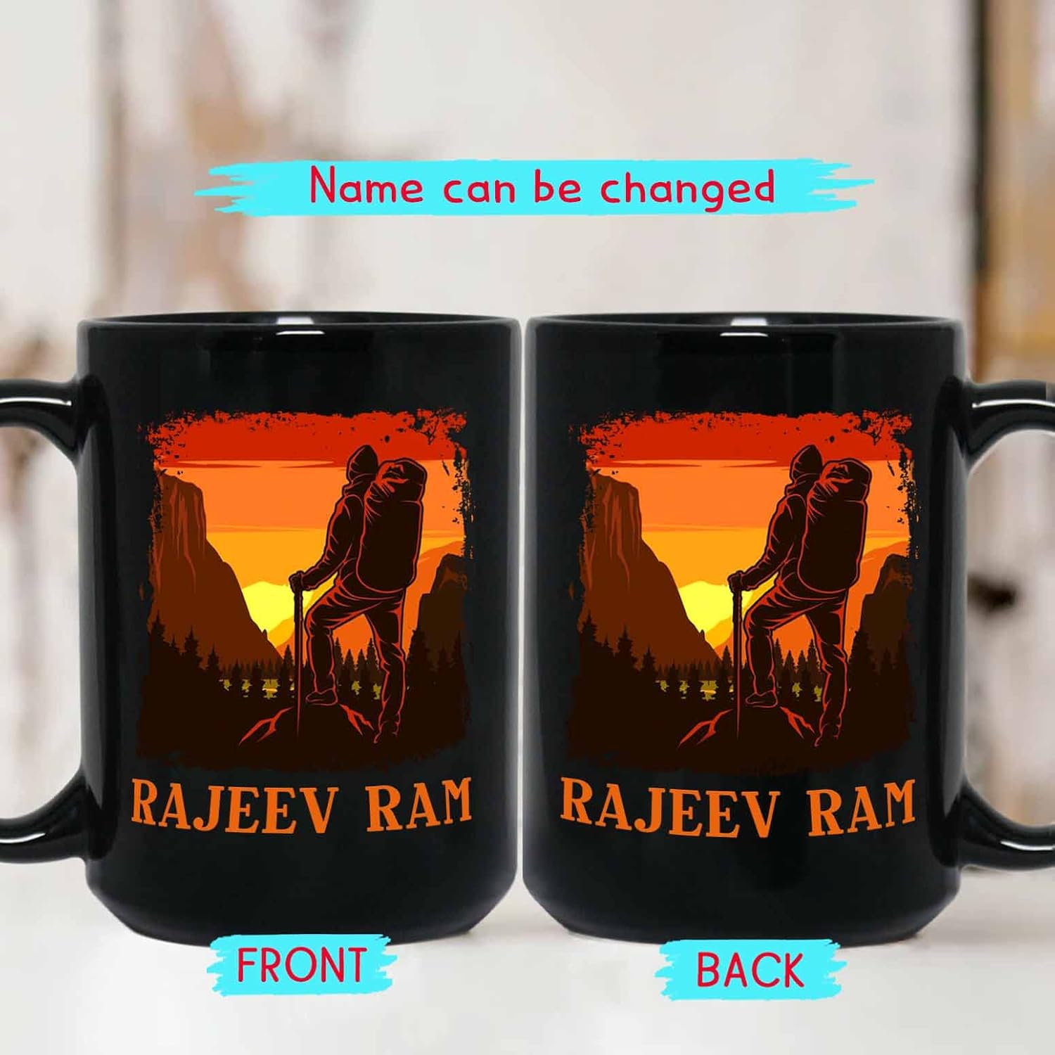 Personalized Name Hiking Coffee Mugs Cups Gifts For Men Women Hiking Lover, Customized Hiking Camp Lover Coffee Cup, Hiking Lover Mountaineer Black Ceramic Mug 11 Oz 15 Oz, Hikers Camper Travel Mug