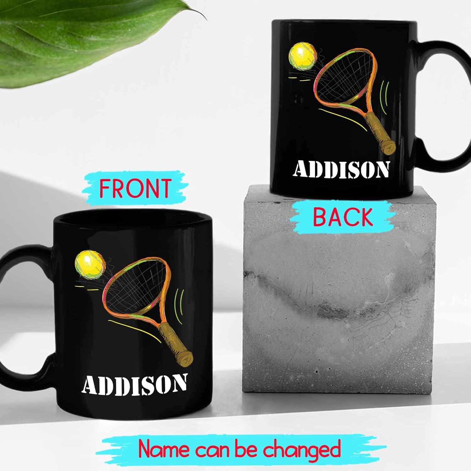 Personalized Tennis Coffee Mugs Cups With Name, Customized Tennis Sport Player Coffee Cup Gifts For Team Coach Tennis Lover, Tennis Ball Black Ceramic Mug 11 Oz 15 Oz, Tennis Players Travel Mug Gift