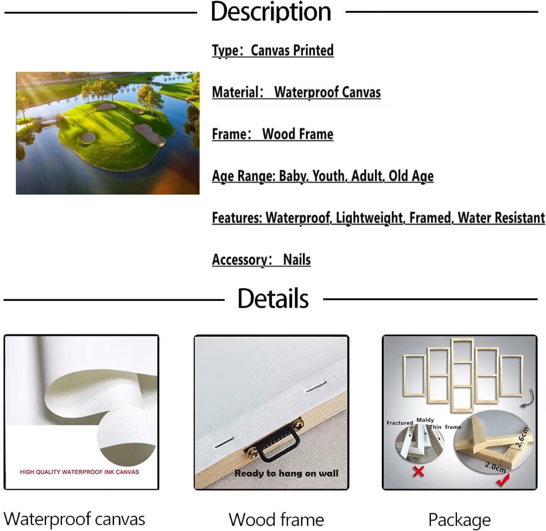 - 💝Golf course canvas wall art will decoration your living room, bedroom,gym room,office,church,hallway,kitchen or farmhouse, dormitory and other wall decorations better than better, you can enjoy the golf course pictures every day.
