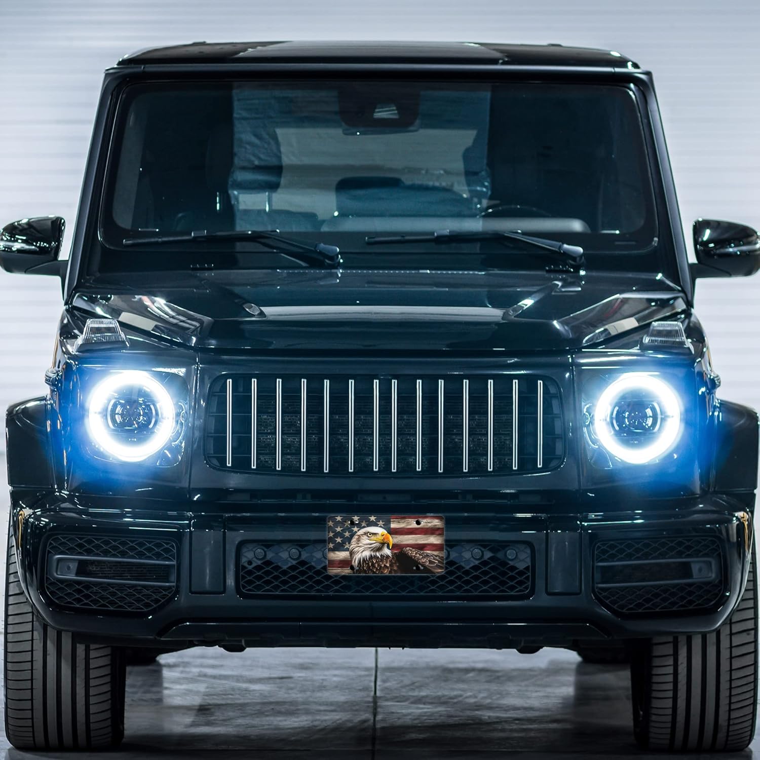 Front License Plate,American Flag with Eagle License Plates Cover Rust-Proof Stainless Steel Metal Car Plate Tag Funny Novelty Vanity Tag Screw Decorative for Men Women