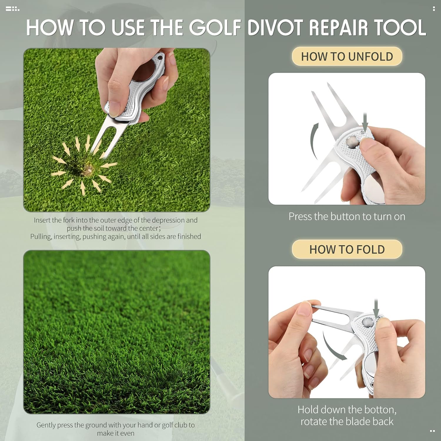 - You will get: 4 pieces golf divot repair tools in silver; Folding design and stylish color make this golf tool very adorable and suitable for you to share with your families and friends as birthday or holiday presents