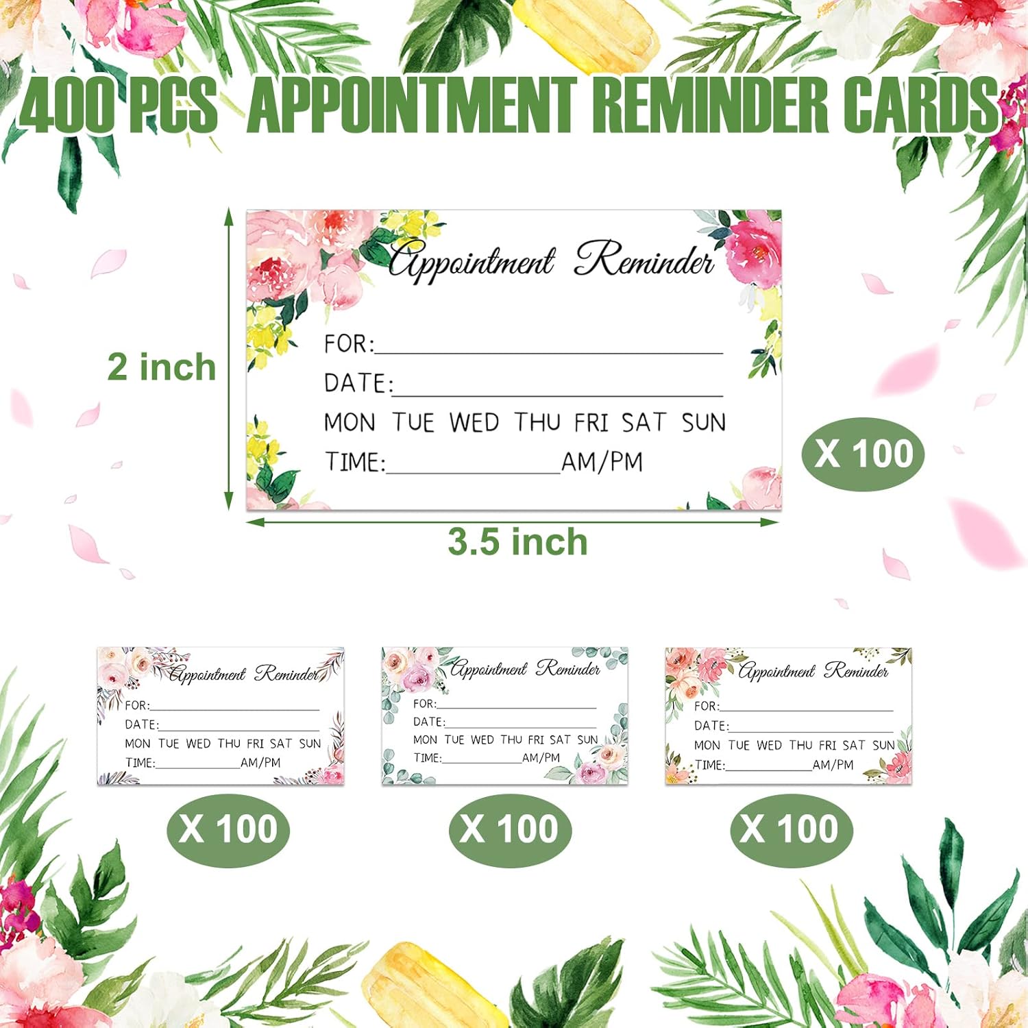 - 400 Pieces for Replacement: you will receive 400 pieces of appointment reminder cards in 4 different designs, 100 pieces for each design; The sufficient quantity covers your needs for daily use, replacement, and sharing with family and colleagues