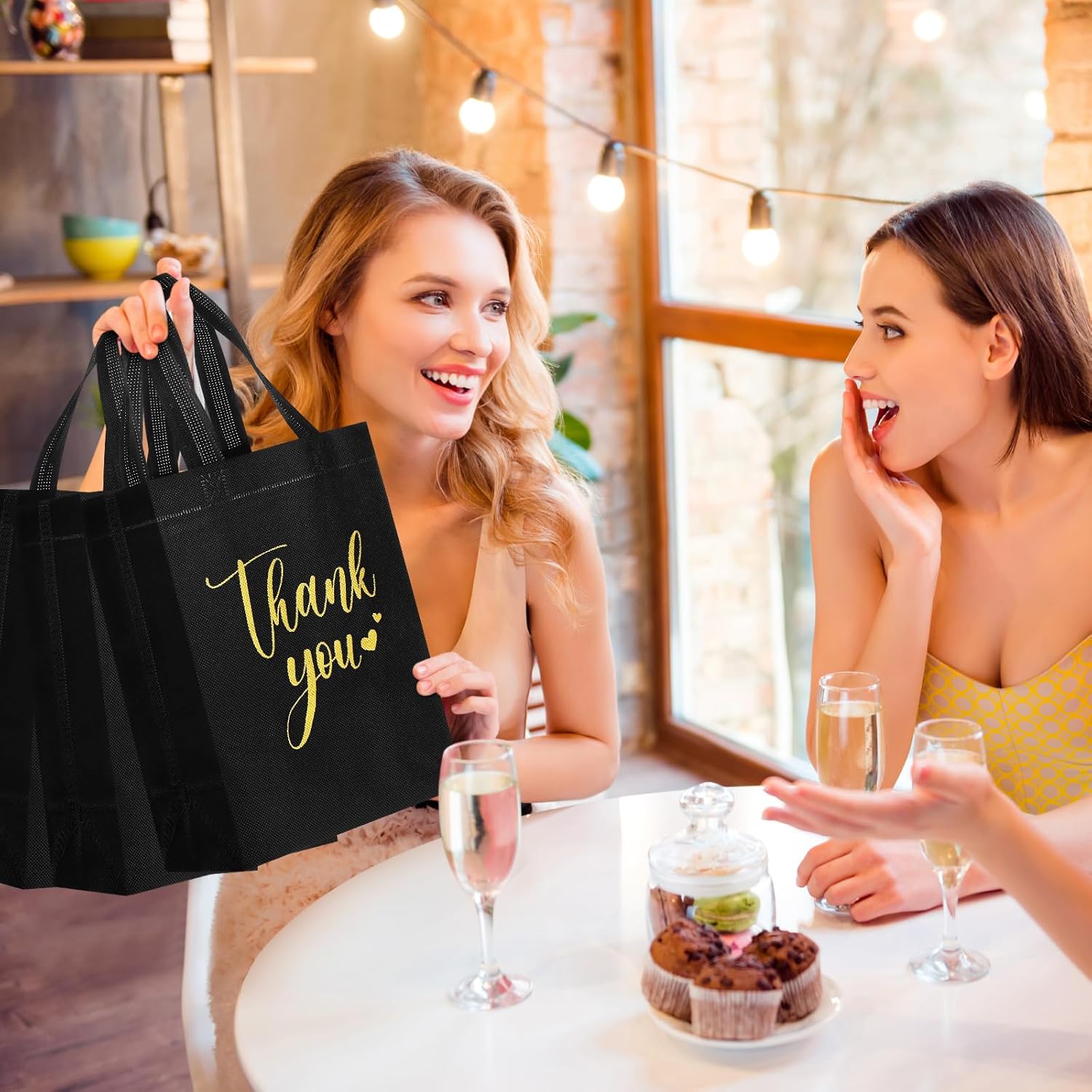 - Applicable for Parties and Daily Life: these thank you tote non woven bags are ideal for weddings and bridal showers, also suitable for birthday parties, baby showers, Thanksgiving, graduation ceremonies, afternoon tea parties, business banquets and other occasions; There is a large enough capacity to hold gifts, jewelry, lipstick, souvenirs, toys, clothes, snacks, candy and more, providing you and your guests with a wonderful party atmosphere