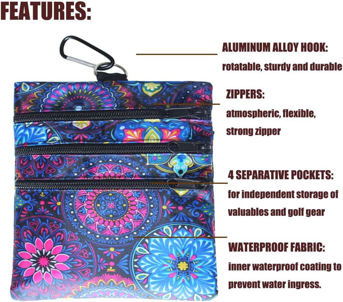 Golf valuables Pouch, Zipper Golf Ball Bag with 4 Pockets, Golf Accessories Pouch for Storing Balls,tees,Mobile Phone,Keys, Cards and Cash, Great Gift for Golfers