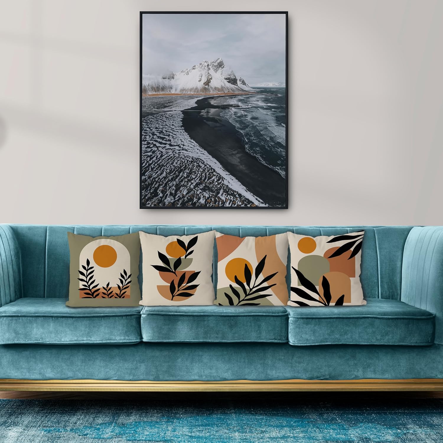 KEUSPI Boho Pillow Covers, Boho Mid Century Sun Botanical Leaf Mountain Nature Throw Pillow Covers,Throw Pillow Covers 18×18 Set of 4,Bohemian Home Decor,Bohemian Gifts for Women Girls