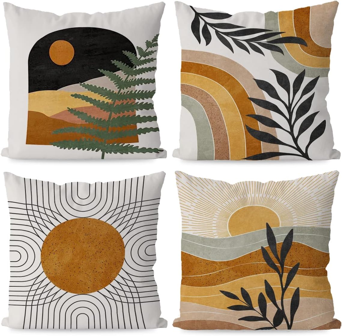 KEUSPI Boho Pillow Coves Sun Rainbow Botanical Leaf Mountain Nature Landscape Throw Pillow Covers,Boho Throw Pillow Covers 18×18 Set of 4,Home Bedroom Bohemian Decor,Bohemian Lovers Girls Women Gifts