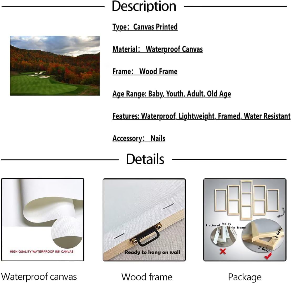 - 💝Golf course canvas wall art will decoration your living room, bedroom,gym room,office,church,hallway,kitchen or farmhouse, dormitory and other wall decorations better than better, you can enjoy the golf course pictures every day.