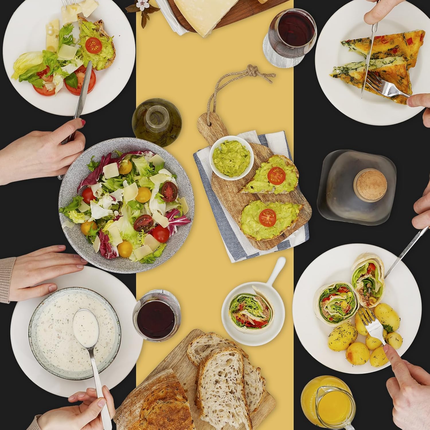 - 【Set】 the package includes 3 pcs plastic tablecloth (54 x 108in) and 3 pcs satin table runner (20 x 108in), specific color as the picture shown.These rectangle disposable tablecloths can fit on 6 feet / 8 feet rectangular or round tables, which are ideal for wedding reception event table decorations.