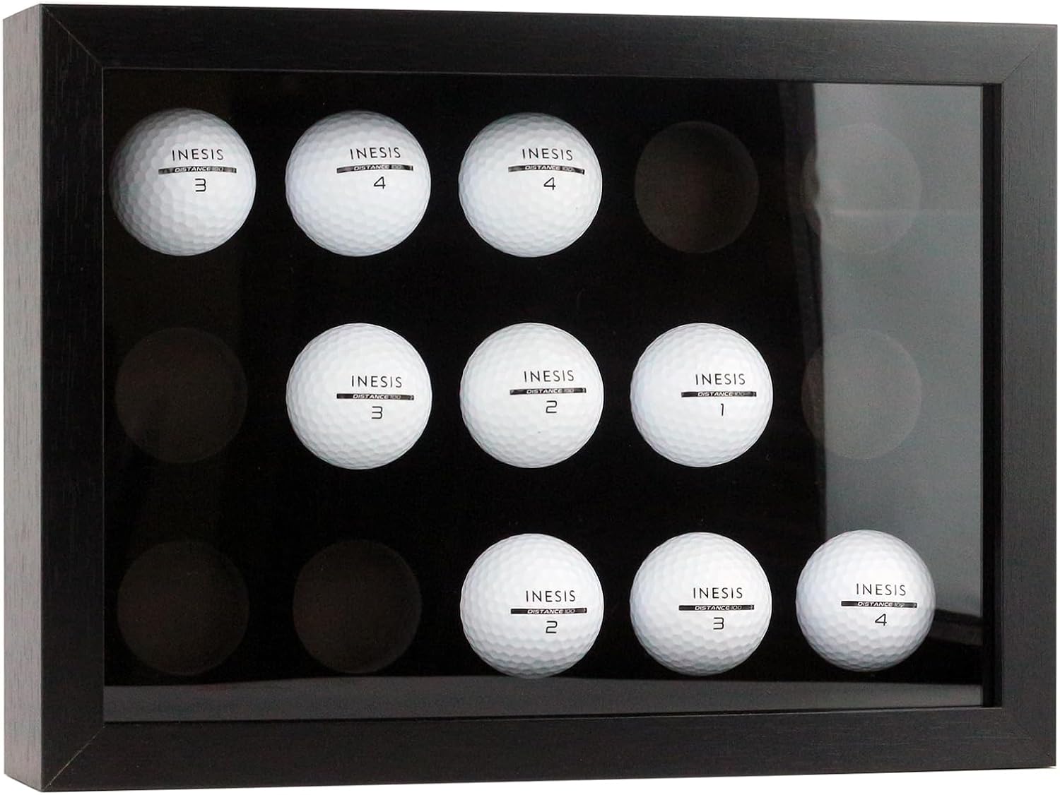Golf Balls Display Case for 15 Balls, Wooden Case with Acrylic Dust UV Cover, Wall Mount and Freestanding Shadow Box for Glofball Collector Memorabilia Autograph Balls