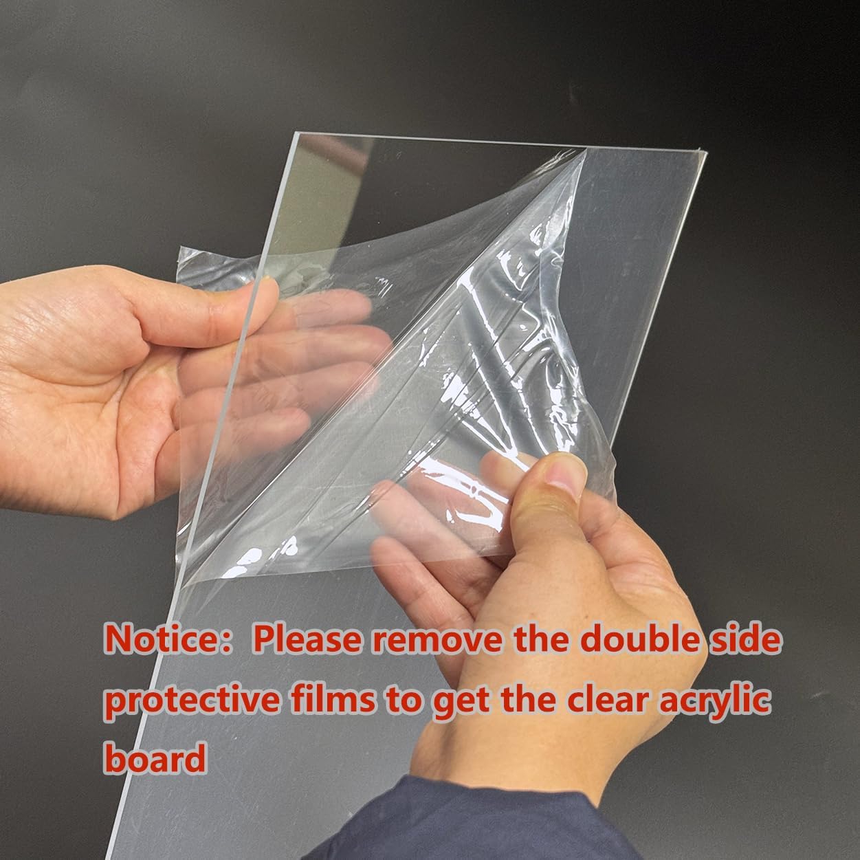 - Notice: Please REMOVE the double side protective films to get the clear acrylic board!