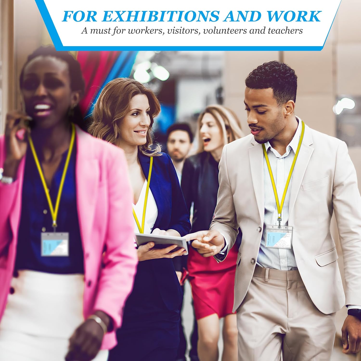 50 Pack Yellow Lanyards for ID Badge Holder - Durable Flat Lanyards with Swivel Hook and Badge Clip