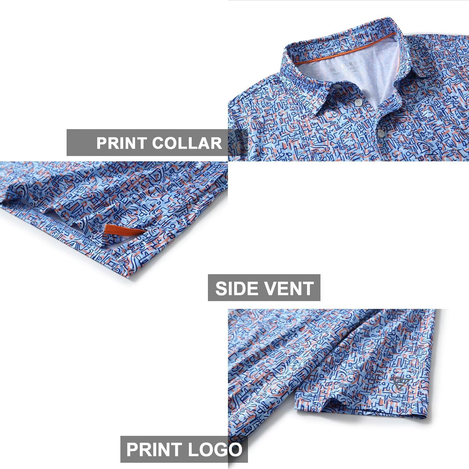 • STYLE FEATURE: This golf polo for men use allover print stretch fabric with easy care and keep good shape, well-made stitching.