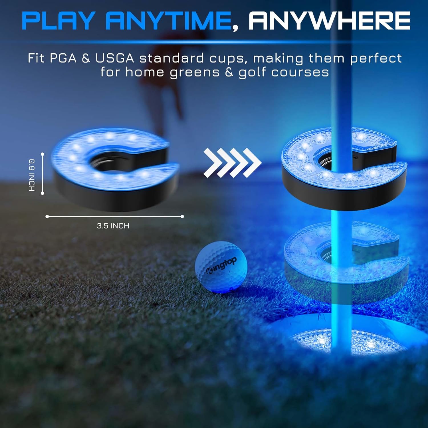 KINGTOP LED Golf Hole Light with Anti-Glare Lens - Battery Operated, Glow in The Dark Putting Cup Lights, Ideal for Night Golf, Backyard Practice Putting Green & Golf Parties