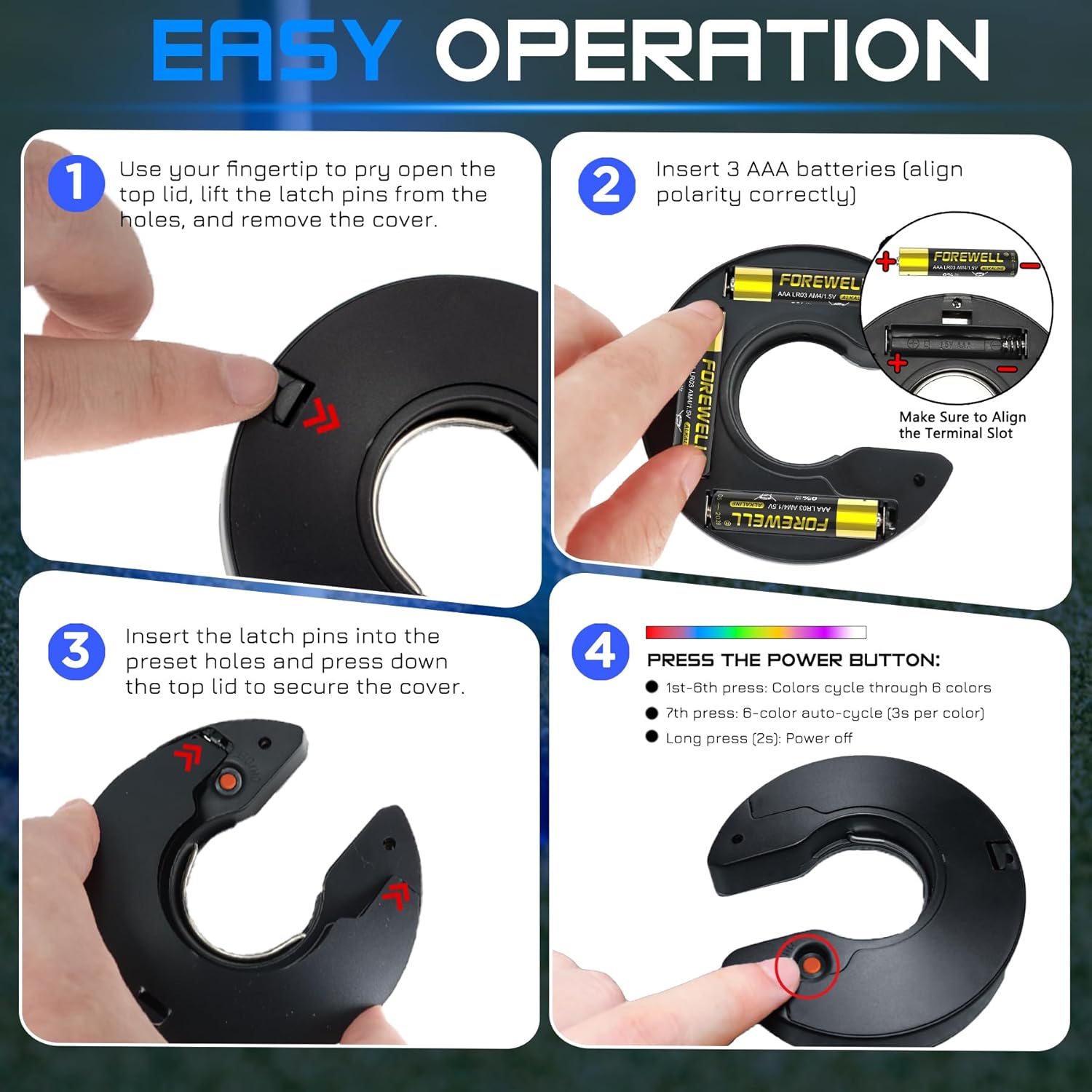 - Color : Battery Powered- RGB- C Shape- 4Pack