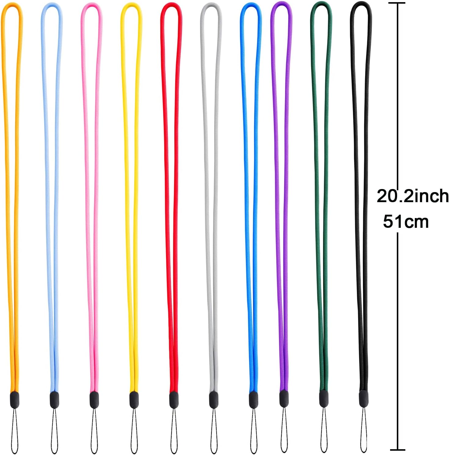 - Products Includ:10 Pcs Lanyards, Black, gray, green, pink, blue, purple, red, orange, yellow, light blue.Length:19.7inch(about 50cm).