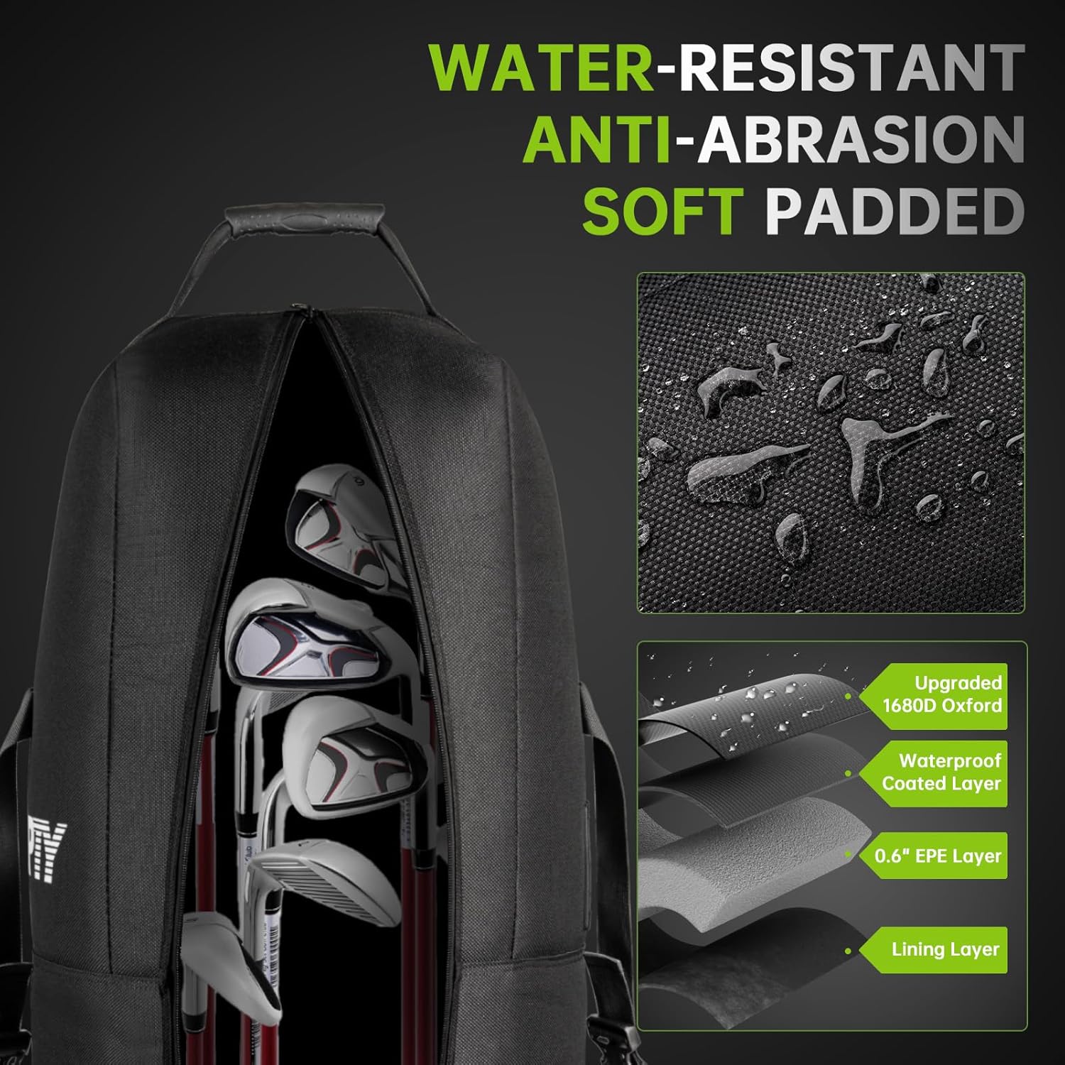 - 【MULTI-PROTECTION】Travel with peace of mind, knowing your golf clubs are well protected by our bag's multi-layered defense. The heavy padding at the top effectively guards your club heads from any impacts during transport, while premium lockable zippers and a waterproof coating layer keep them secure and dry.