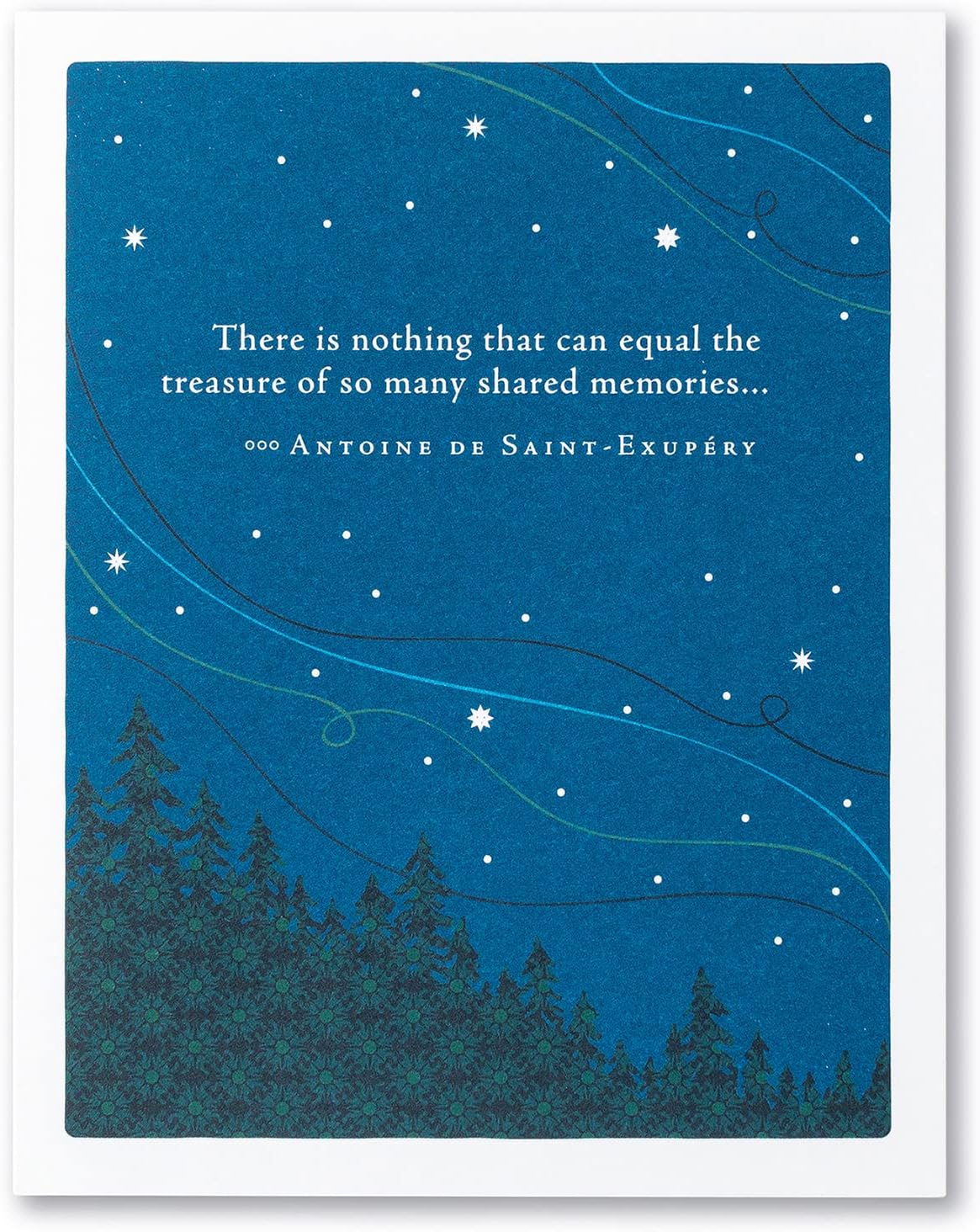 - NIGHT SKY — Cover Quote: "There is nothing that can equal the treasure of so many shared memories…" -Antoine de Saint-Exupery — Inside Copy: Wishing you peace in this time of sadness.