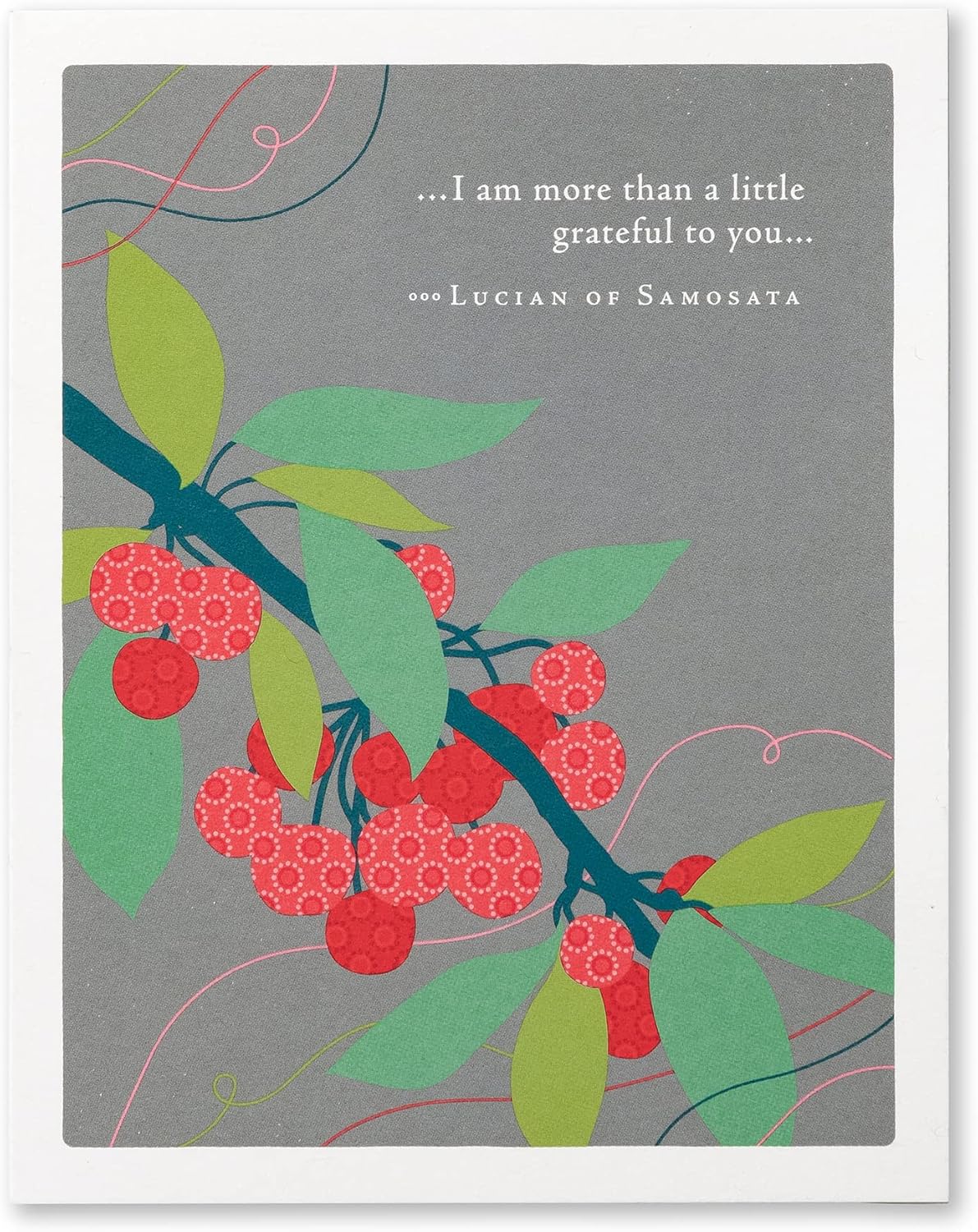 - Recognize the people who make a different and share your gratitude with this assortment of thank you cards. Compendium’s bestselling Positively Green greeting cards combine beautiful illustrations and inspiring quotes to mark life’s moments with heart. This pack contains 4 different thank you cards with white envelopes. Printed in the USA with FSC-certified, 100% post-consumer recycled paper. Each card is 4.25"W x 5.38"H.