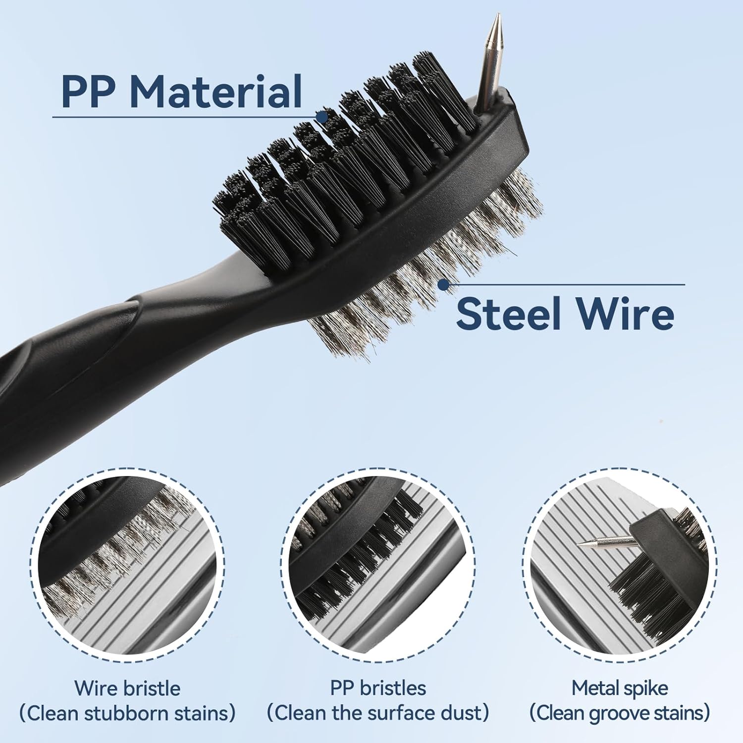 - Efficient Cleaning: Our golf club cleaning set is designed to fit securely on your golf bag ensuring that you always have access to a clean, dry towel when you need it. The brush with a retractable zip line is a great way to clean the grooves on clubs. The metal pick at the top of the brush makes it easier to remove pebbles and dirt that get stuck in the grooves.