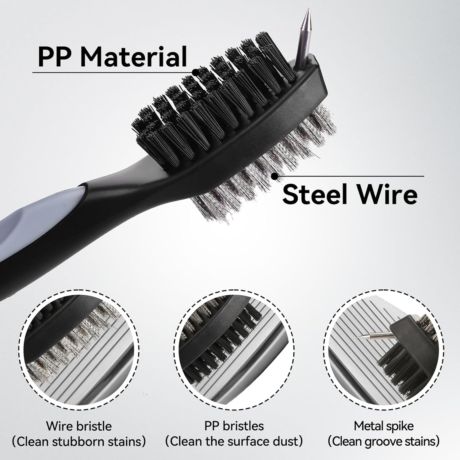 - Efficient Cleaning: Our golf club cleaning set is designed to fit securely on your golf bag ensuring that you always have access to a clean, dry towel when you need it. The brush with a retractable zip line is a great way to clean the grooves on clubs. The metal pick at the top of the brush makes it easier to remove pebbles and dirt that get stuck in the grooves.