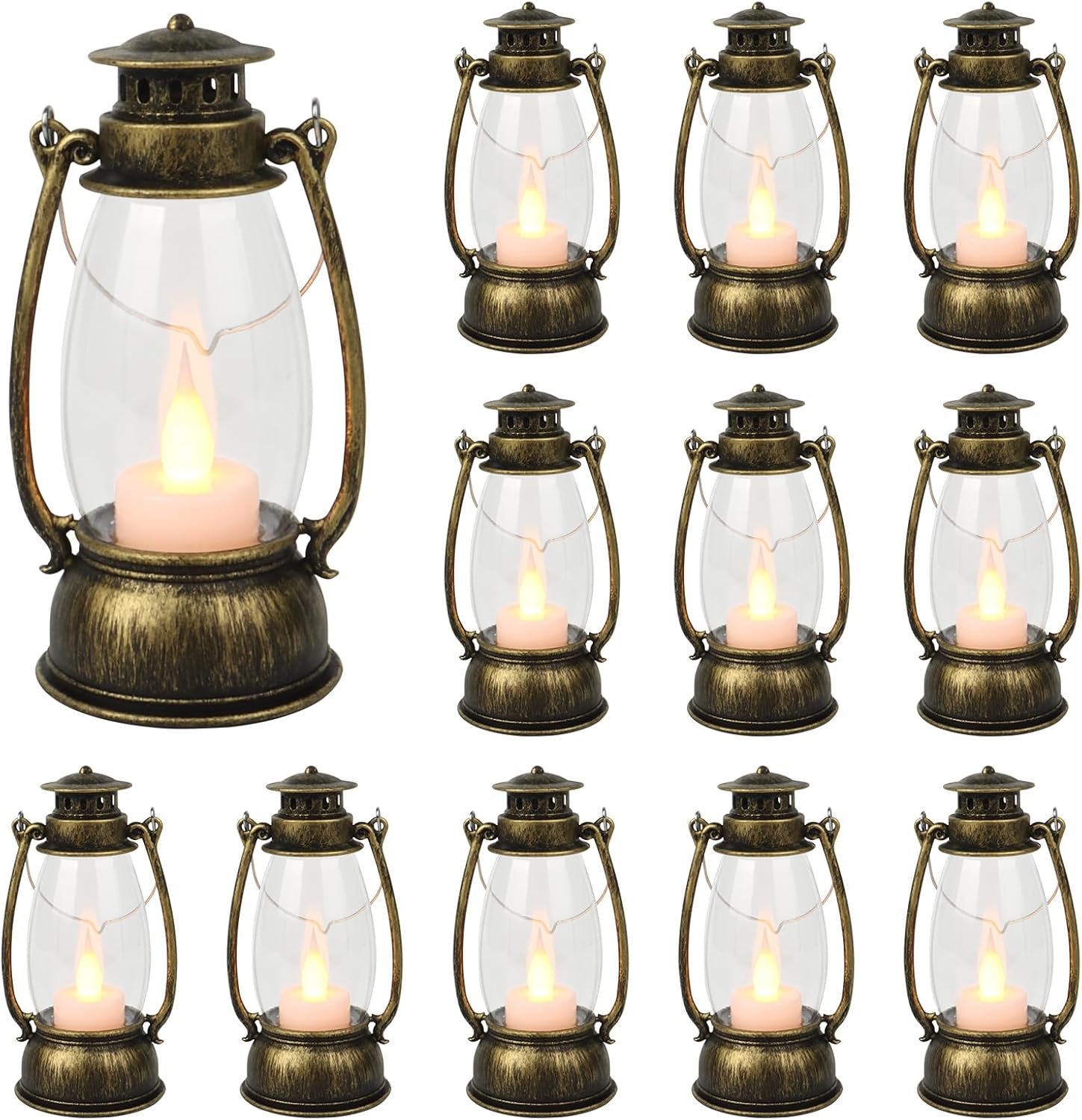 12Pcs Mini Lantern for Halloween Decor, 6Inch Small Lanterns for Western Garden Camping Party Decorations, Vintage Candleholders Table Centerpiece, Forest Christmas Wedding Decorations (Brass)